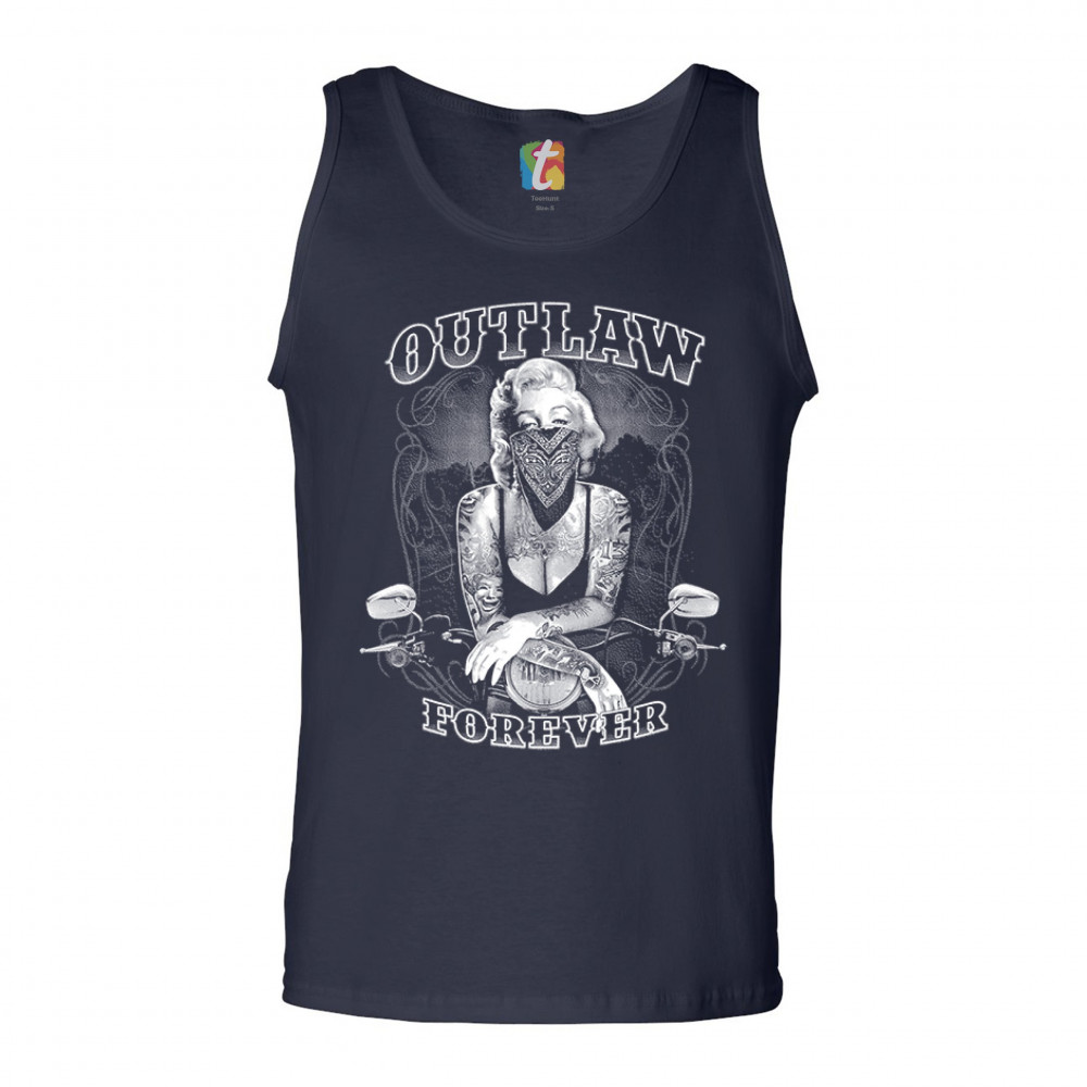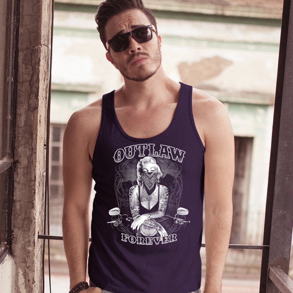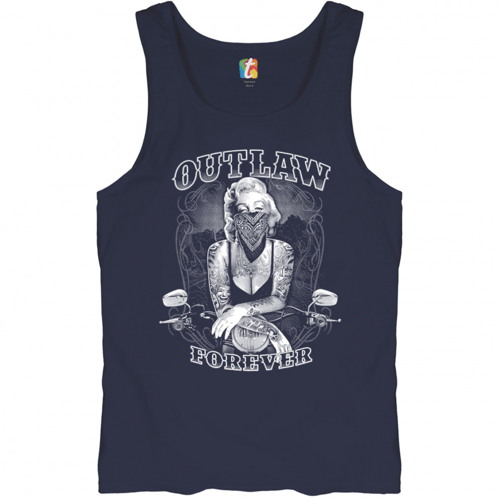 MARILYN MONROE OUTLAW FOREVER tank top biker live to ride motorcycle men's top navy blue