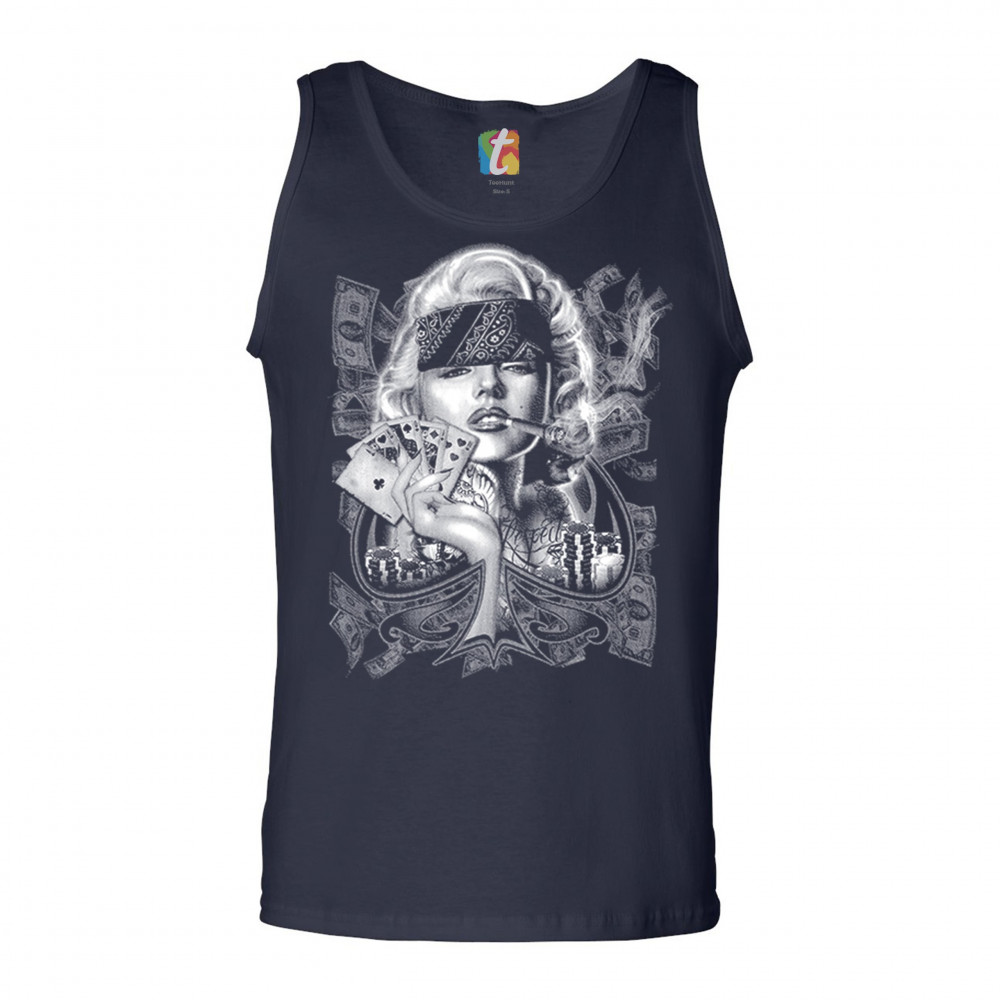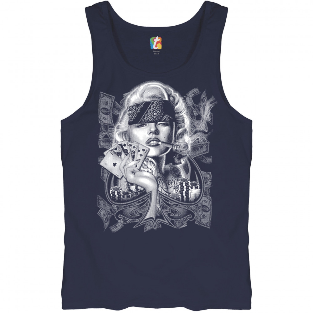 MARILYN MONROE PLAYING POKER SMOKING A JOINT tank top 420 marijuana men's top navy blue