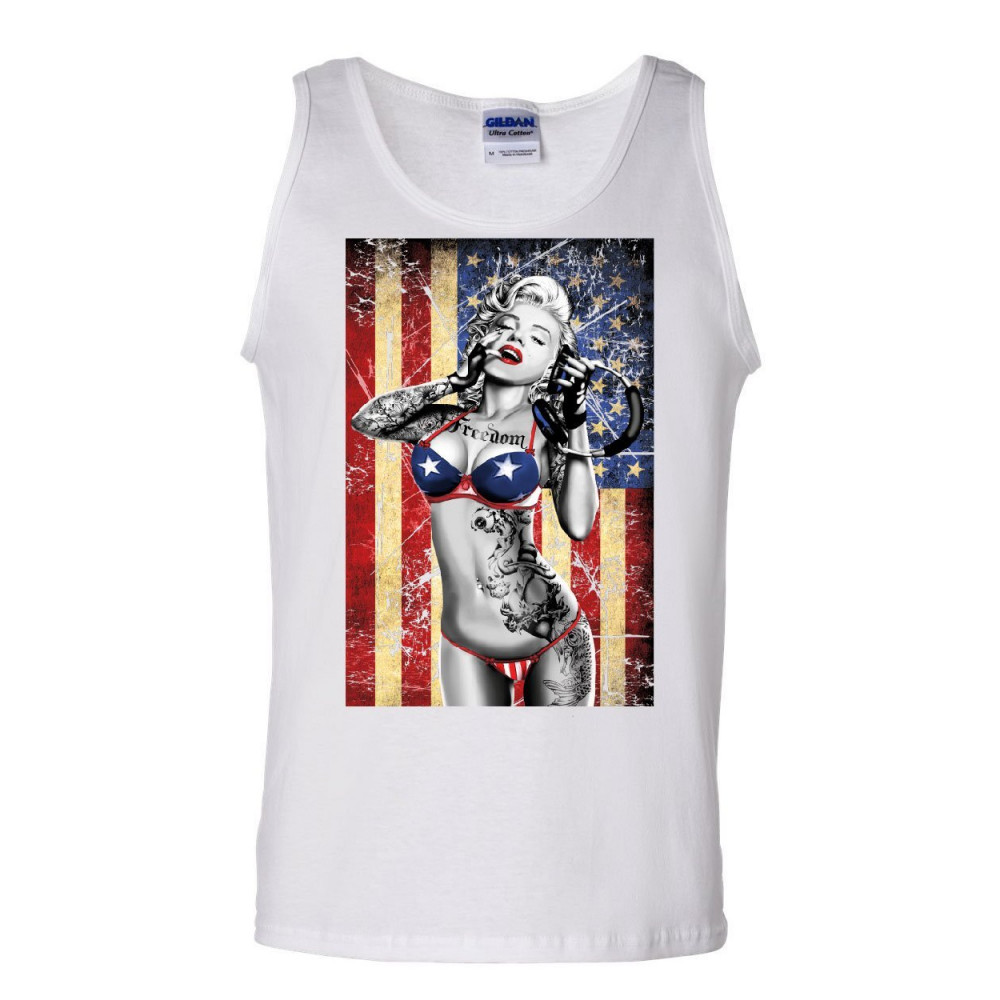 SEXY MARILYN MONROE US FLAG marilyn monroe us flag tank top freedom sexy girl tattoos gangsta sleeveless white