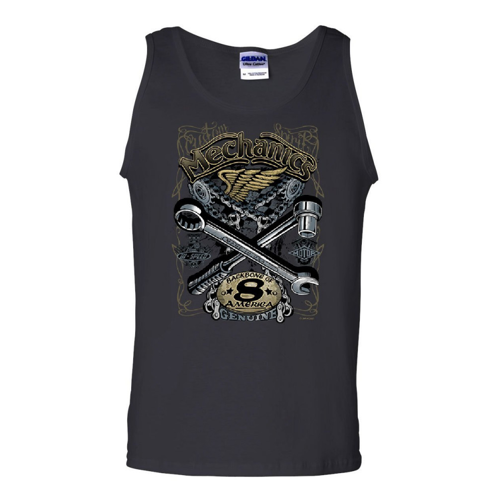 MECHANICS - BACKBONE OF AMERICA mechanics backbone of america tank top engine repair blue collar sleeveless black