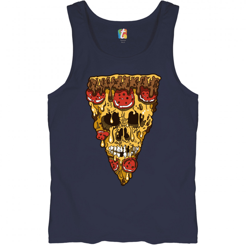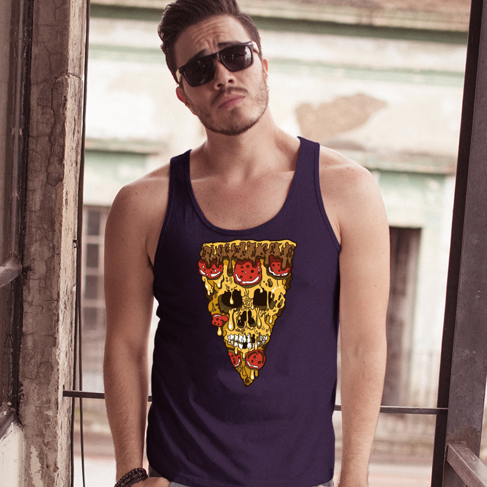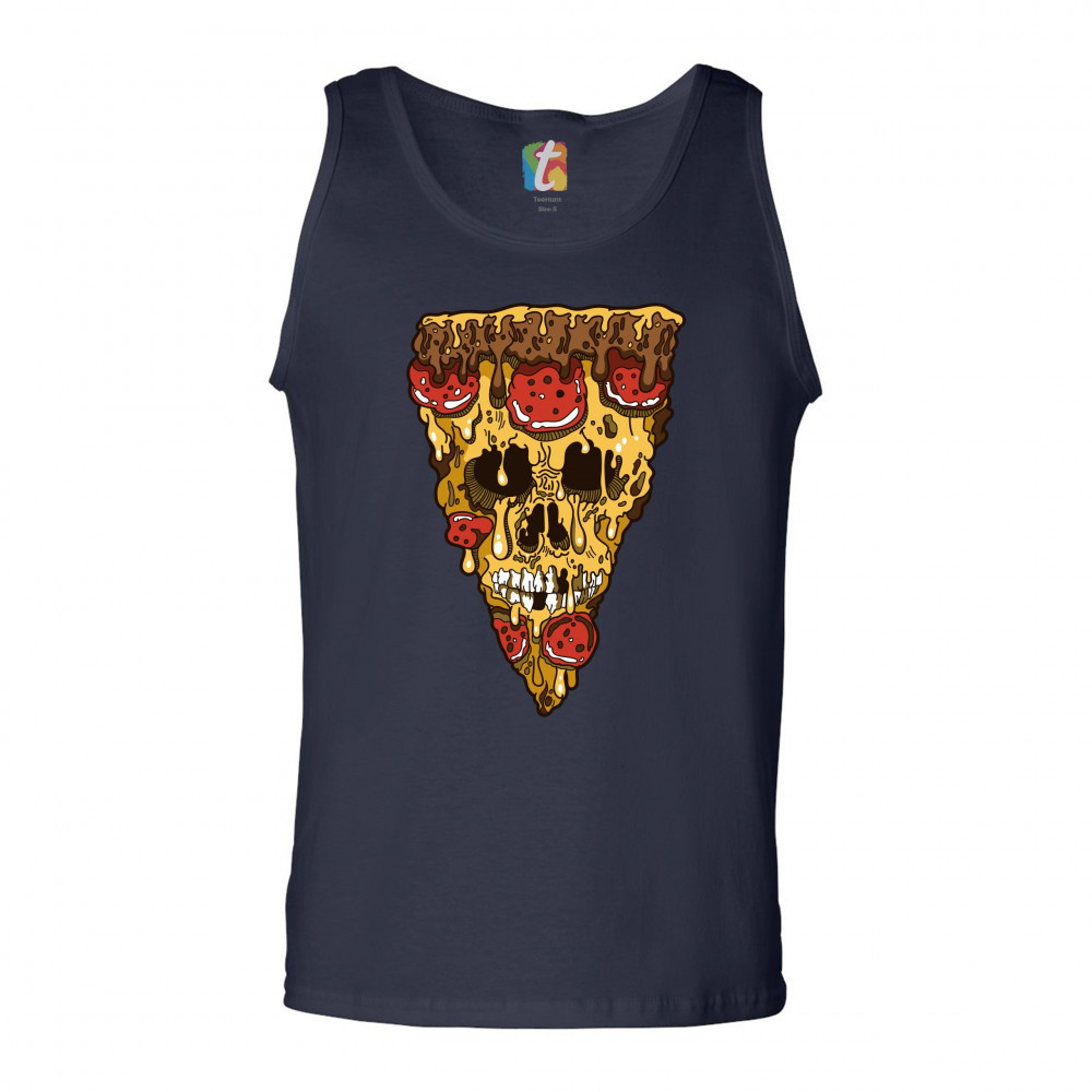 MELTING PIZZA ZOMBIE FACE tank top horror halloween scary undead men's top navy blue