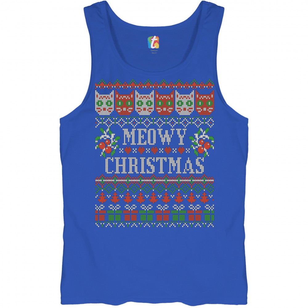 MEOWY CHRISTMAS tank top ugly sweater cat lover funny xmas men's top royal blue