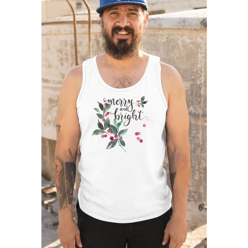 MERRY AND BRIGHT CUTE CHRISTMAS tank top jolly santa clause xmas men's top white