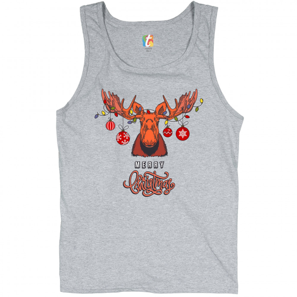 MERRY CHRISTMAS BUCK tank top reindeer rudolph holiday spirit men's top gray