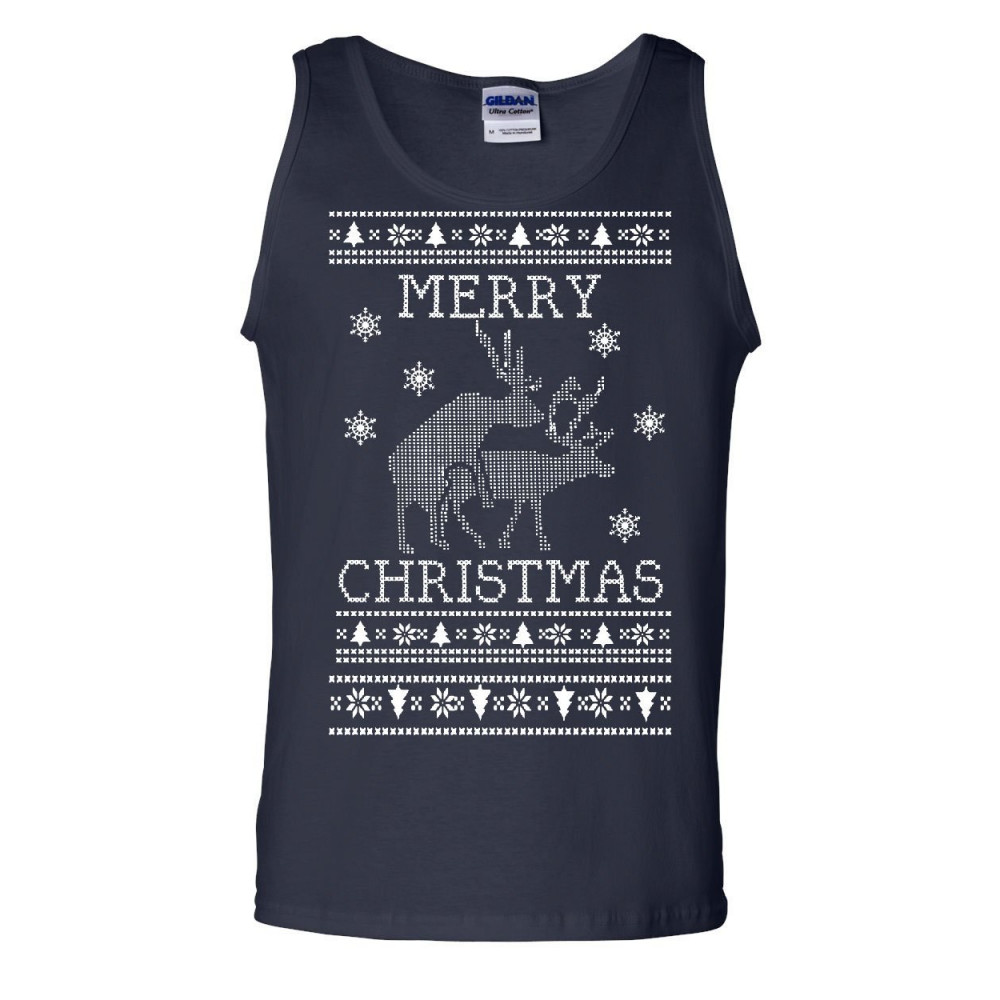 MERRY CHRISTMAS DEERS merry christmas tank top deer humping ugly sweatshirt xmas top navy blue