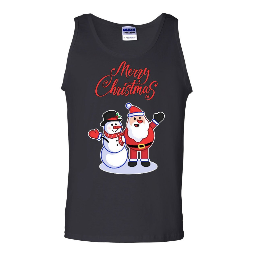 MERRY CHRISTMAS SANTA AND SNOWMAN merry christmas santa snowman hug tank top xmas holiday spirit sleeveless black