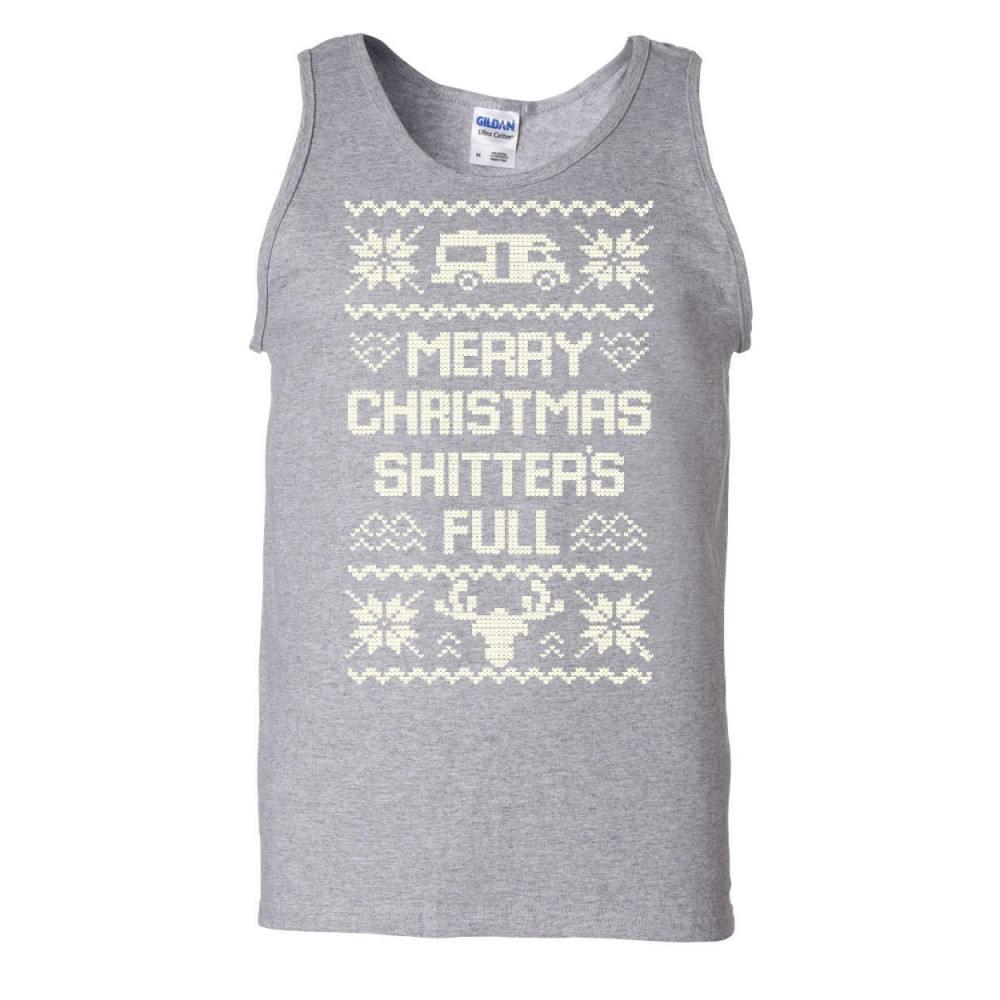 MERRY CHRISTMAS SHITTER'S FULL tank top ugly sweatshirt xmas top gray