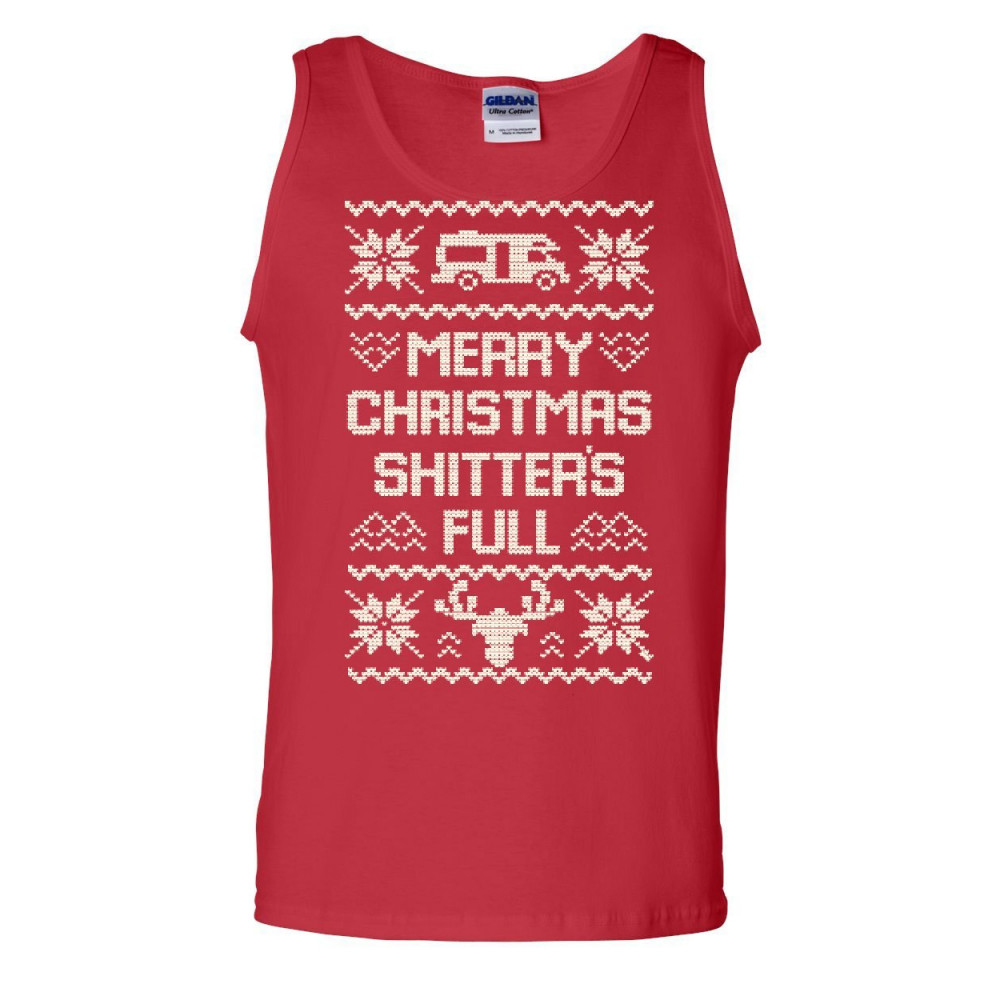 MERRY CHRISTMAS SHITTER'S FULL tank top ugly sweatshirt xmas top red