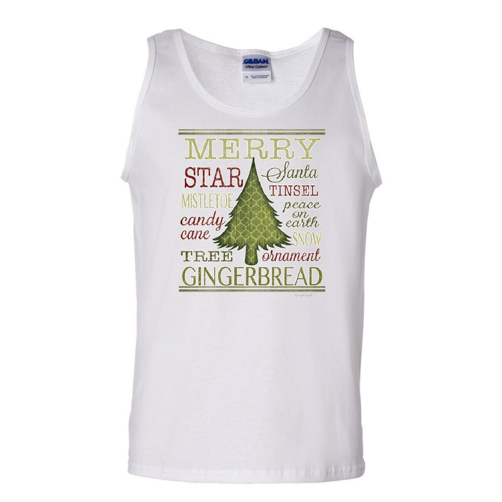 MERRY CHRISTMAS xmas tree tank top holiday spirit joy santa snow sleeveless white