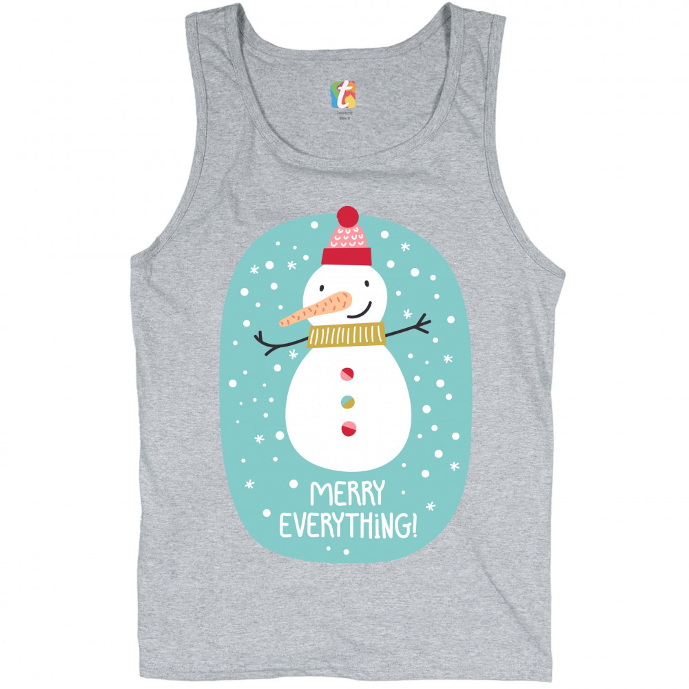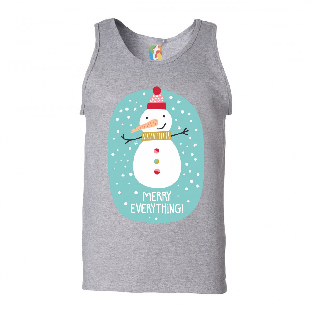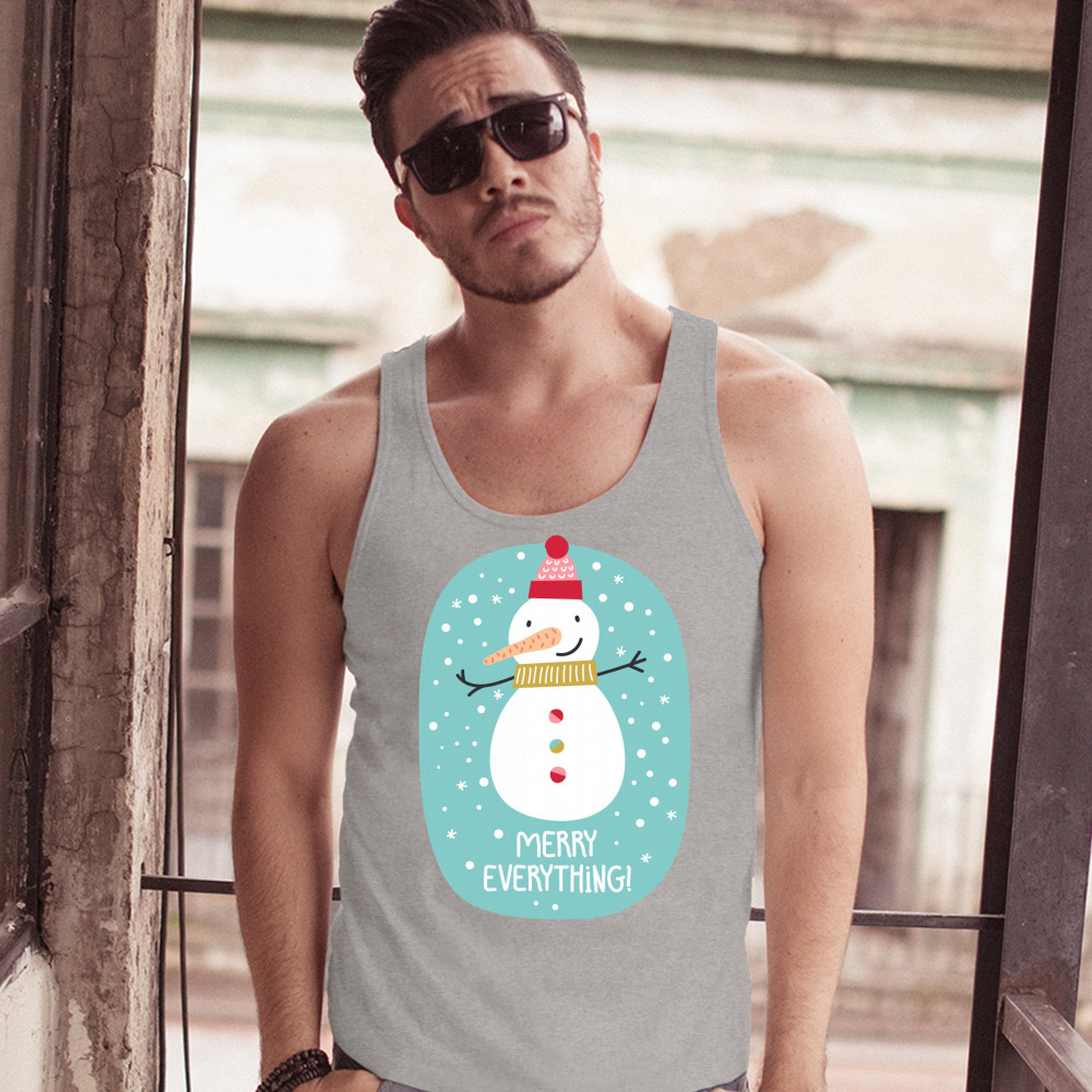 A print featuring a happy snowman with a carrot nose wearing a hat and a scarf smiling and spreading it's hands. It is snowing and below the snowman it says: "Merry Christmas". Amazing choice to make people smile and spread positive vibes on Christmas Eve