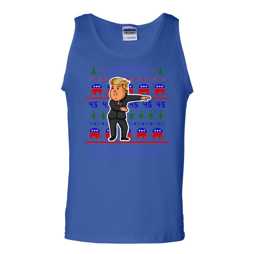 MERRY FLOSSMASS merry flossmas tank top christmas xmas ugly sweater trump floss sleeveless blue
