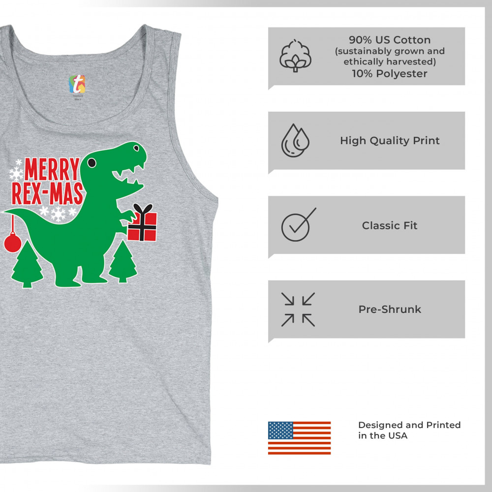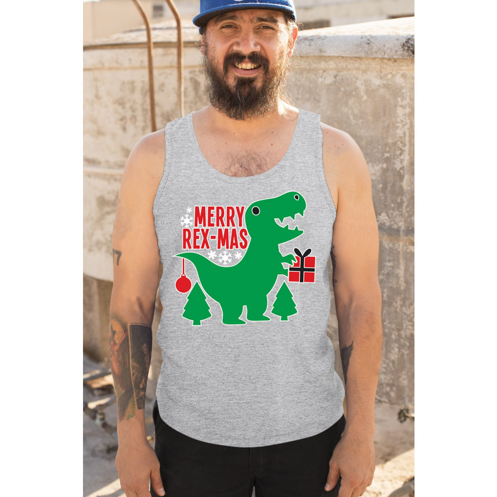 Merry Rex-Mas dinosaur Christmas design with a cute T-Rex, gift, and festive holiday details. Perfect for fun family celebrations and cheerful winter style.