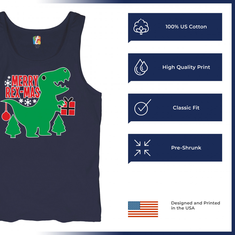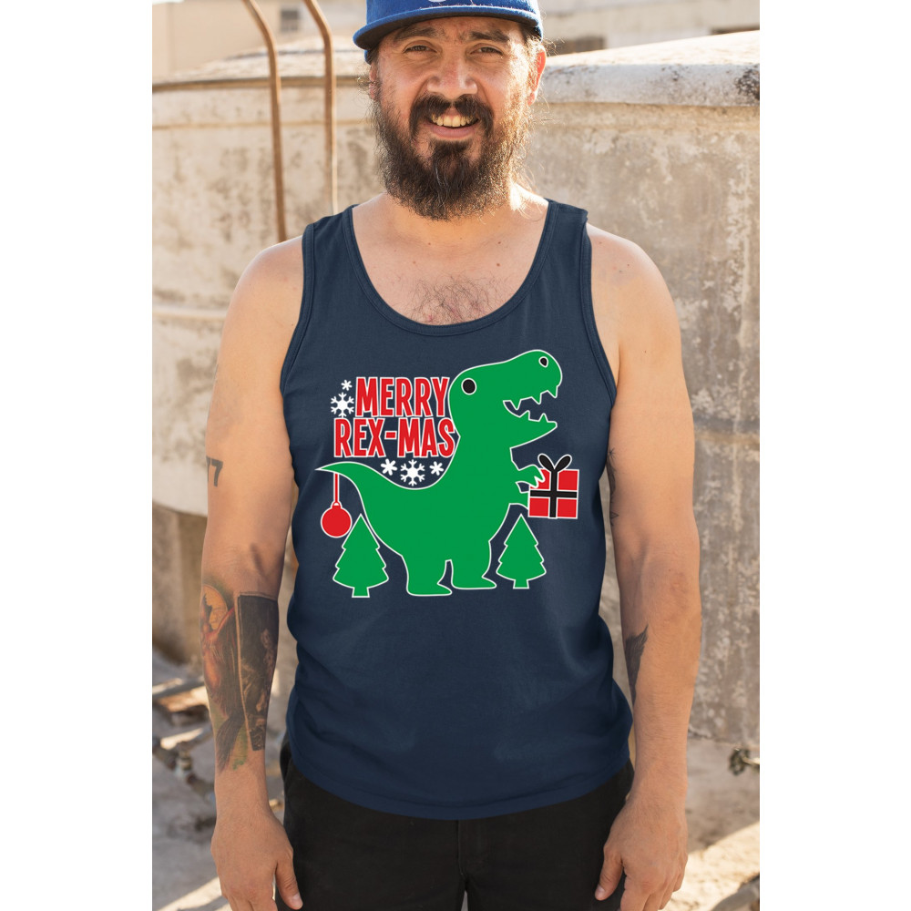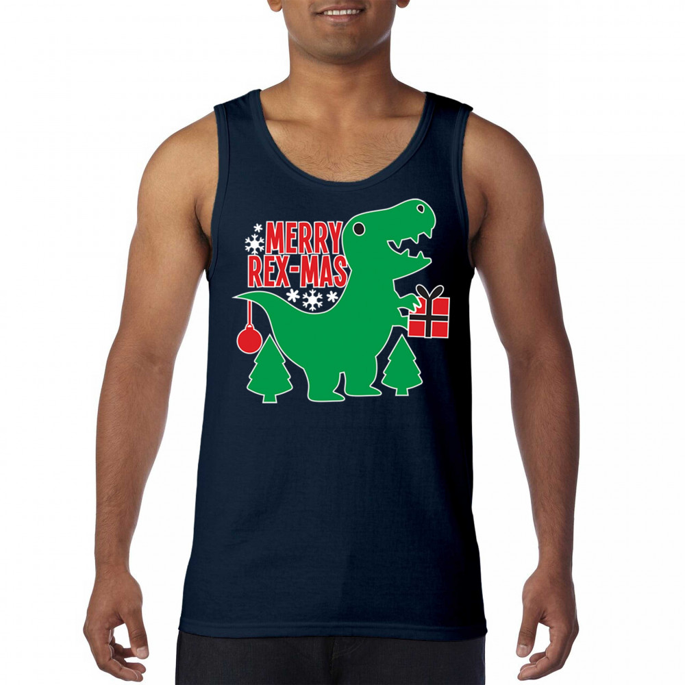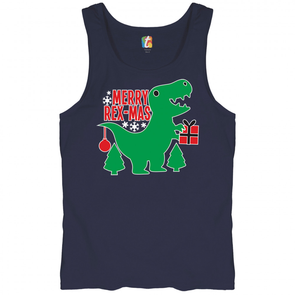 Merry Rex-Mas dinosaur Christmas design with a cute T-Rex, gift, and festive holiday details. Perfect for fun family celebrations and cheerful winter style.