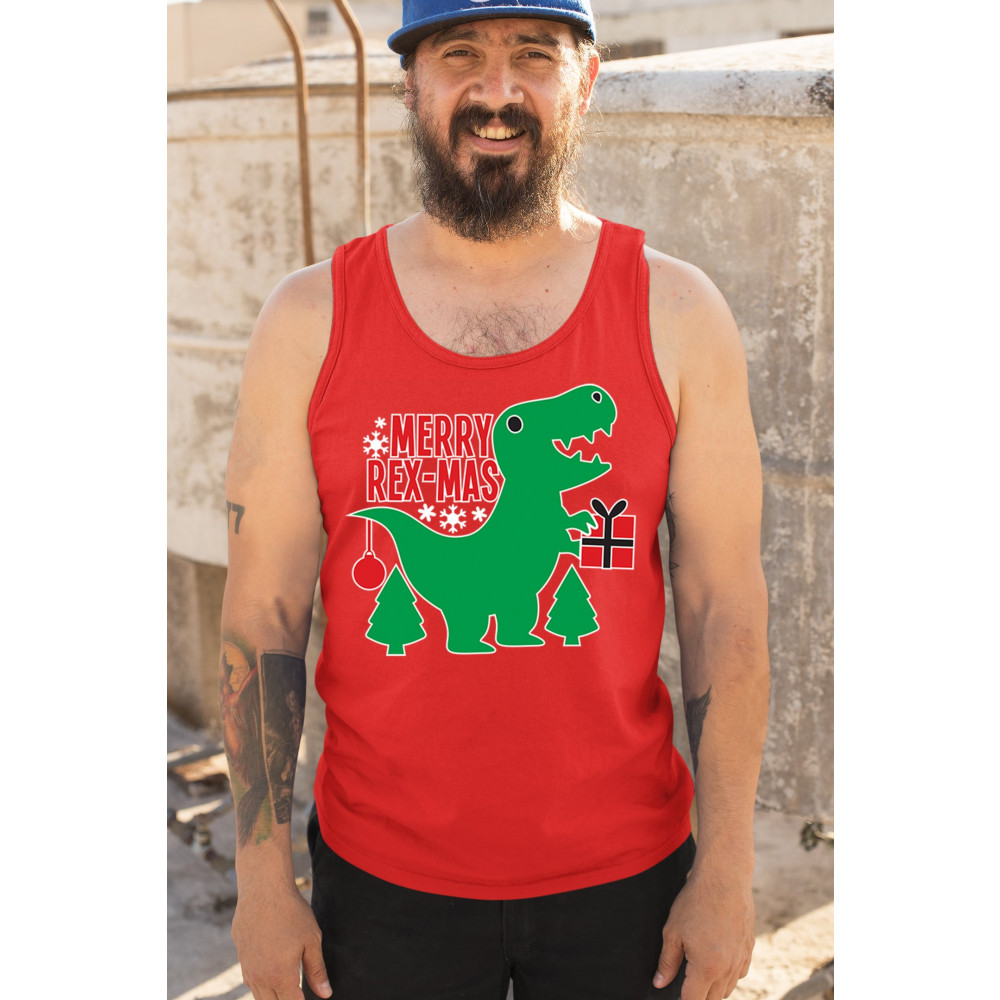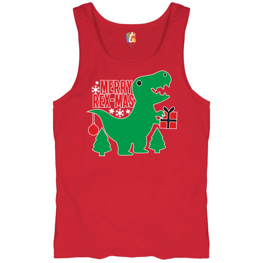 Merry Rex-Mas dinosaur Christmas design with a cute T-Rex, gift, and festive holiday details. Perfect for fun family celebrations and cheerful winter style.