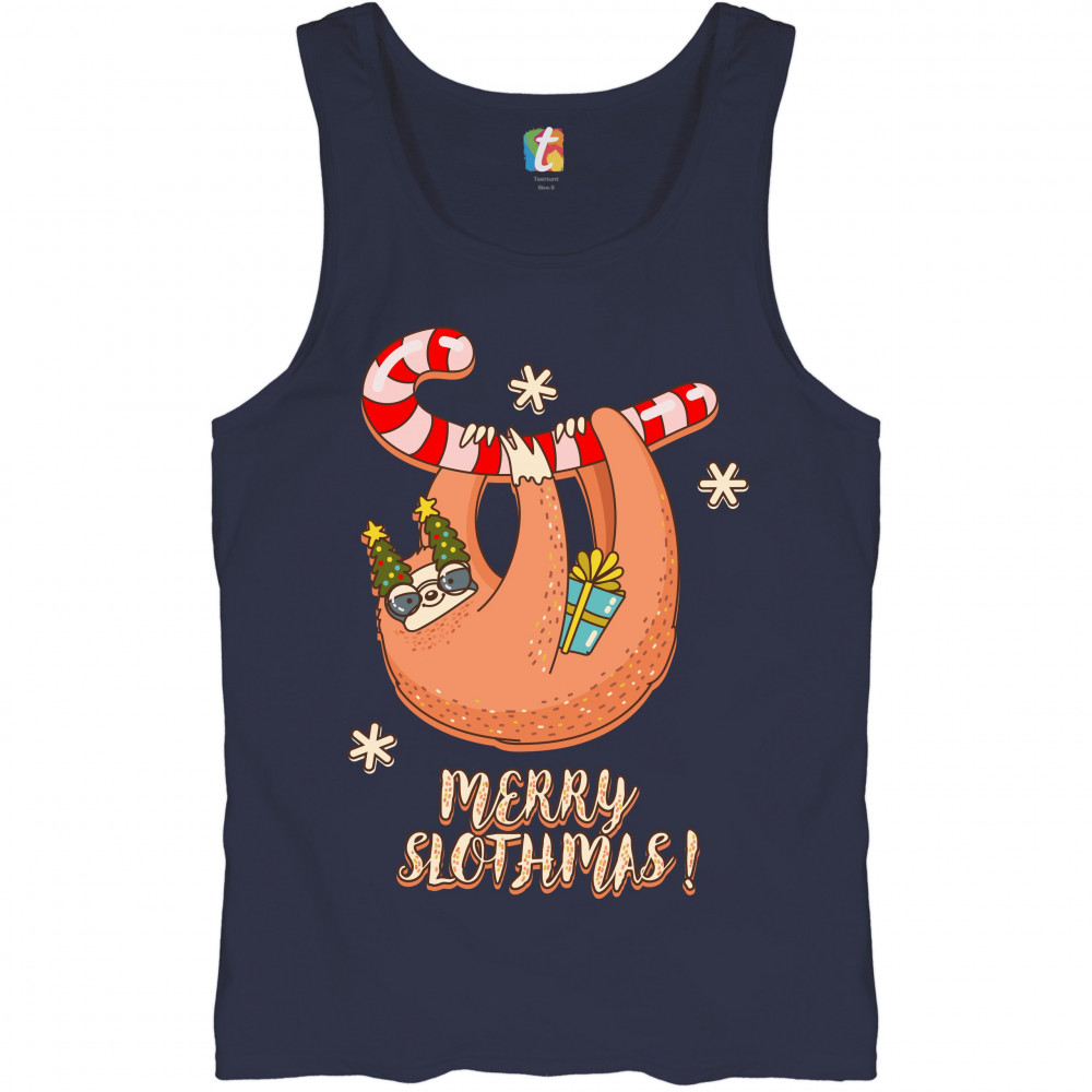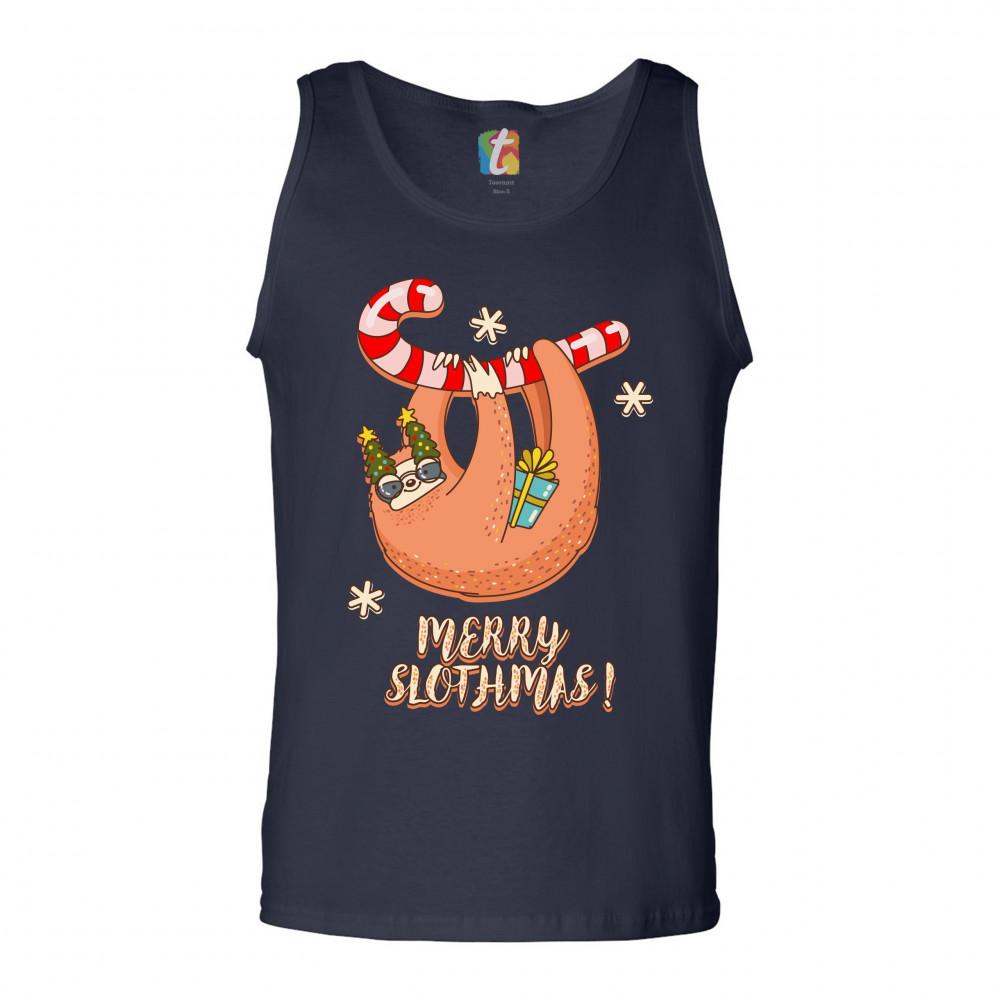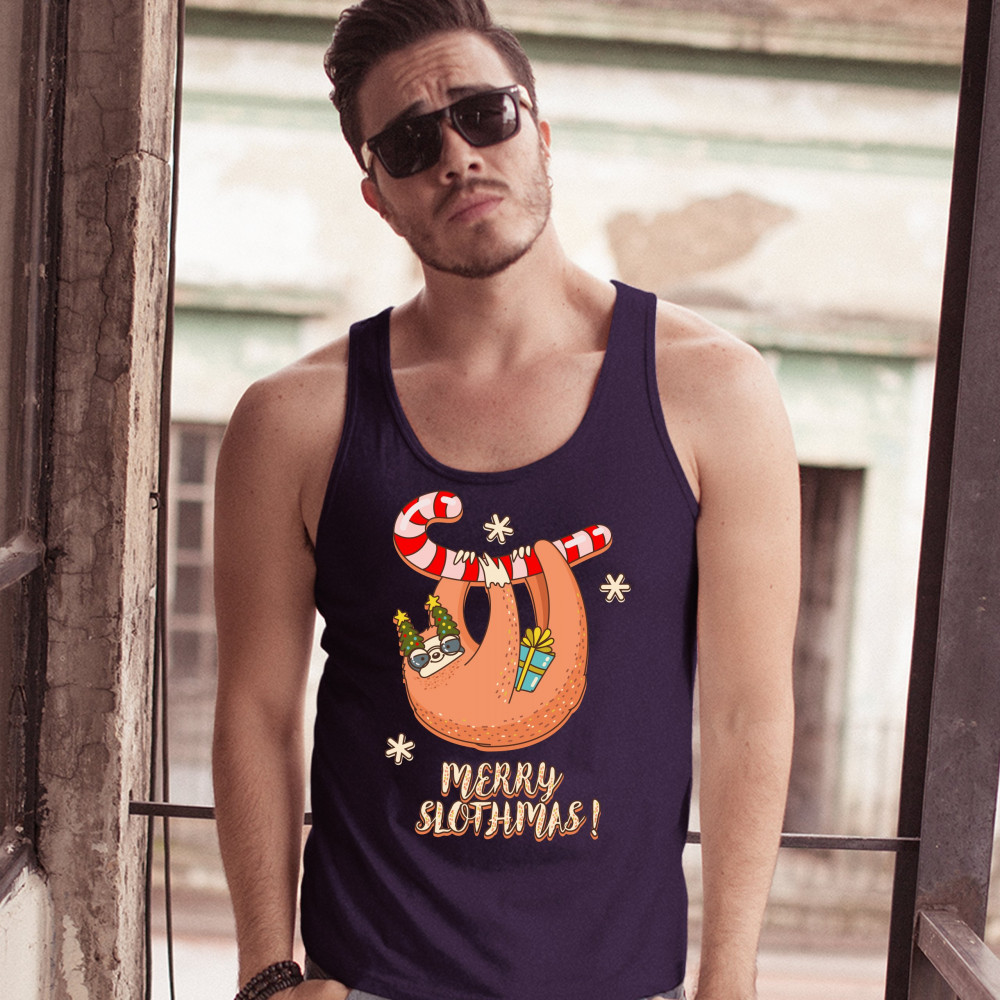 MERRY SLOTHMAS tank top christmas sloth candy cane let it snow men's top navy blue