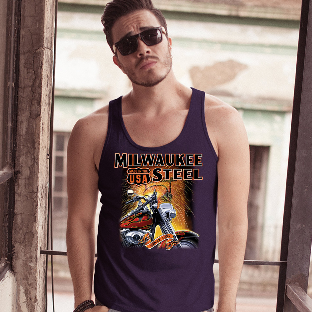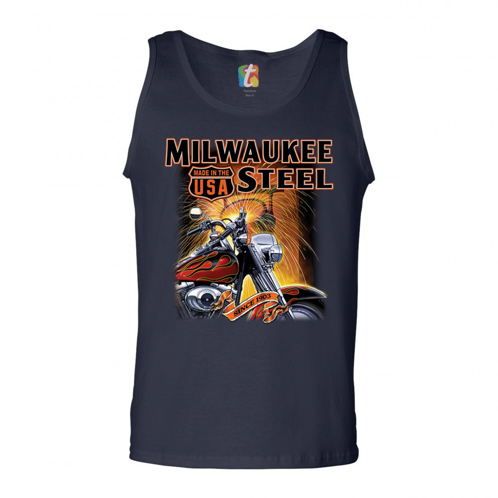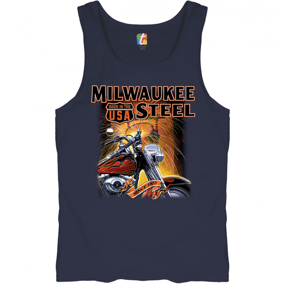 MILWAUKEE STEEL tank top route 66 motorcycle chopper bobber biker men's top navy blue