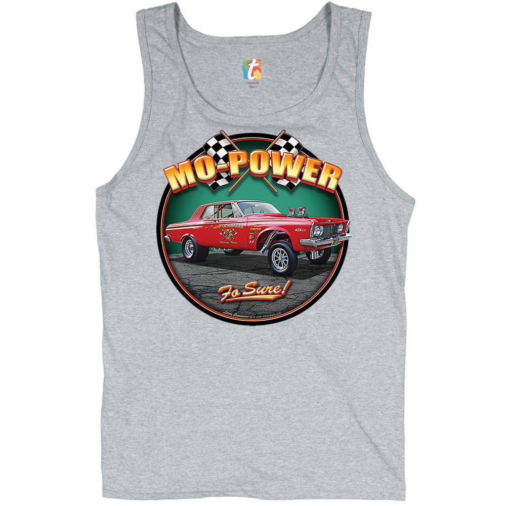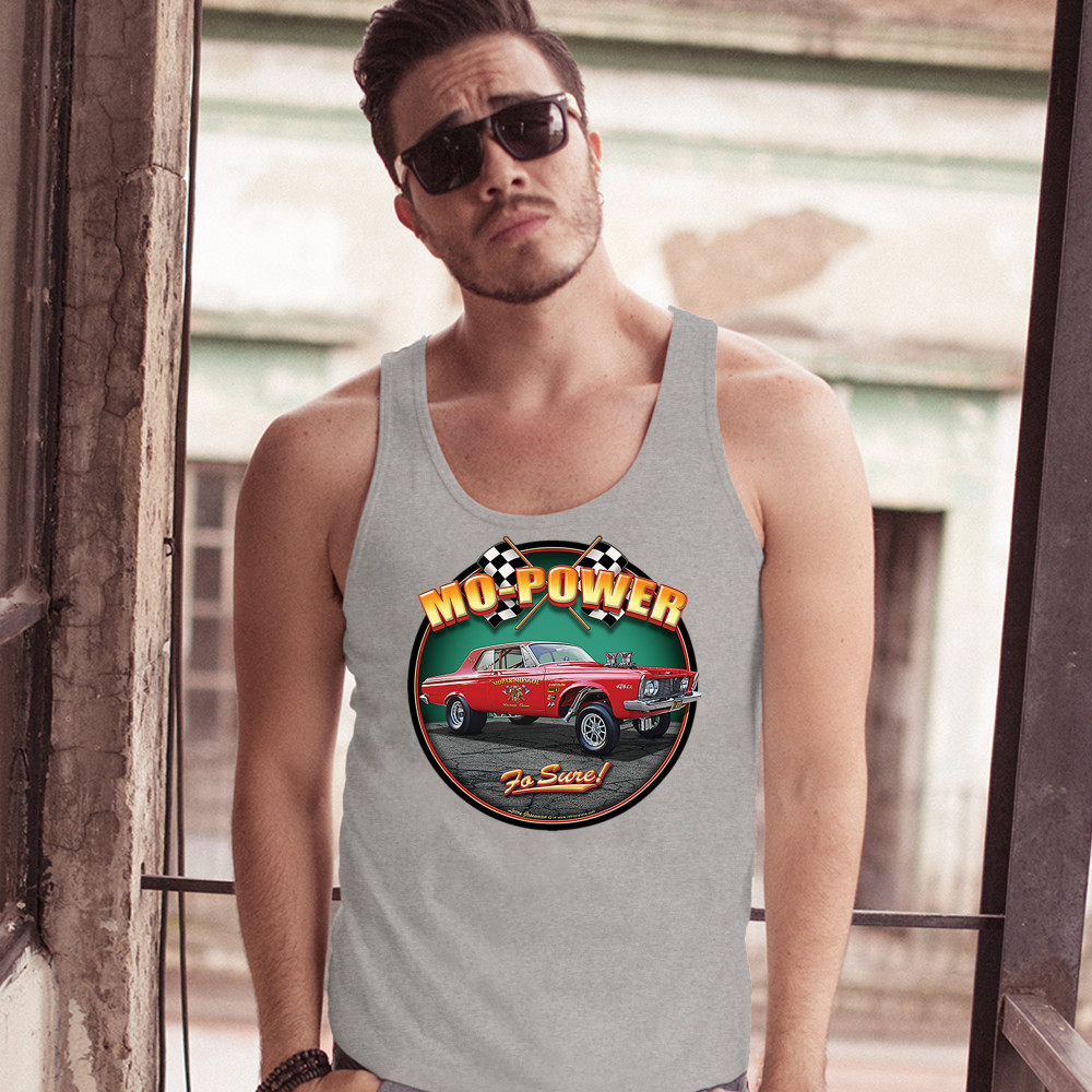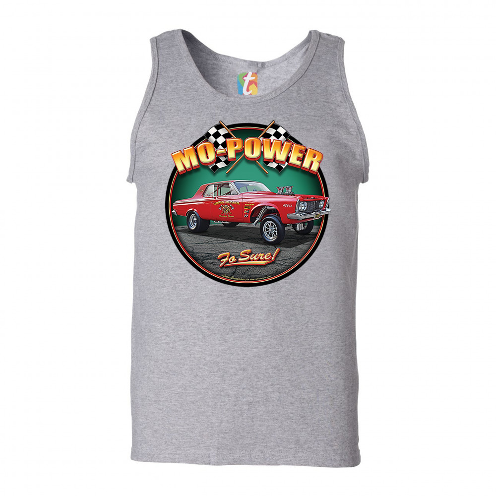 MO-POWER FO SURE! tank top american muscle car racing route 66 men's top gray