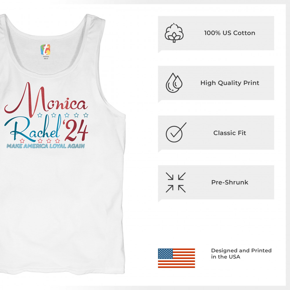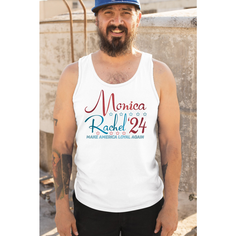 Bring together the nostalgia of "Friends" and the excitement of the upcoming election with this Monica and Rachel '24 design. This shirt is the perfect way to showcase your love for the iconic TV show while keeping the political atmosphere light and fun. Ideal for fans of Rachel and Monica, or anyone who appreciates a good joke, this shirt will have people laughing wherever you go. Wear it proudly and let your style speak volumes without saying a word!