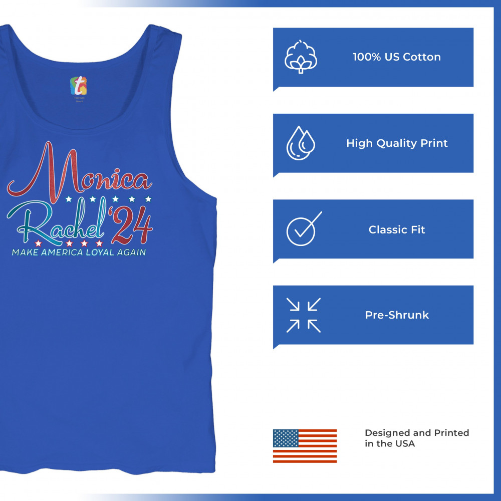 Bring together the nostalgia of "Friends" and the excitement of the upcoming election with this Monica and Rachel '24 design. This shirt is the perfect way to showcase your love for the iconic TV show while keeping the political atmosphere light and fun. Ideal for fans of Rachel and Monica, or anyone who appreciates a good joke, this shirt will have people laughing wherever you go. Wear it proudly and let your style speak volumes without saying a word!