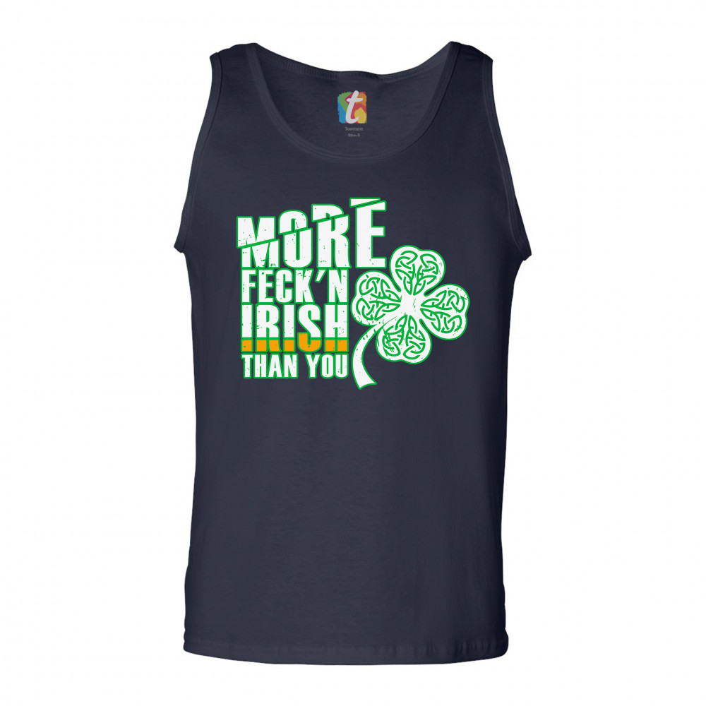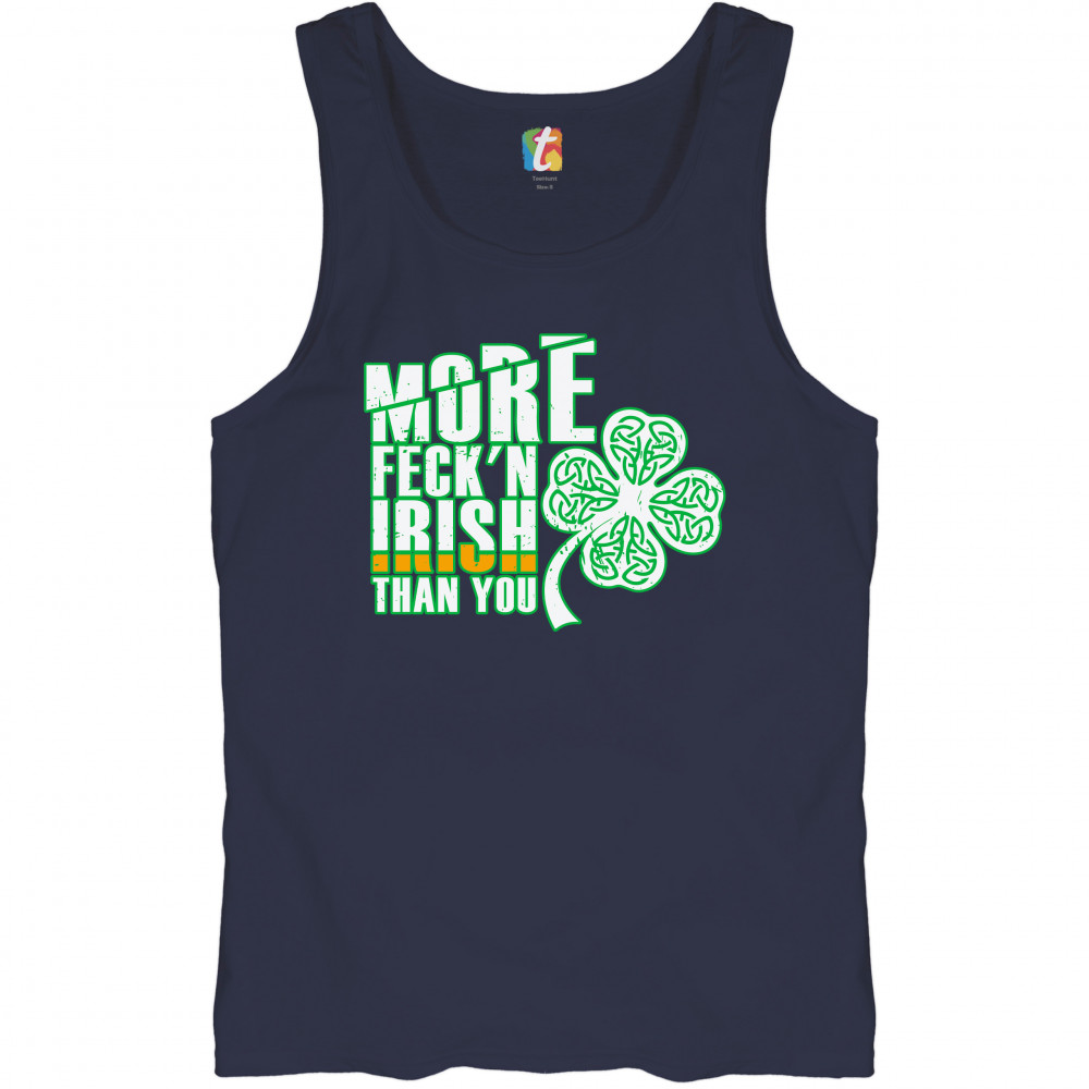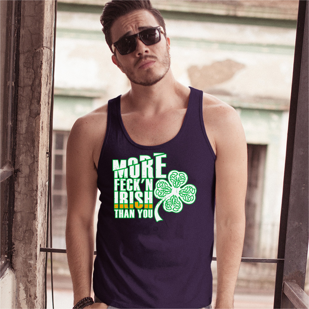MORE FECK'N IRISH THAN YOU tank top st. patrick's day shamrock men's top navy blue