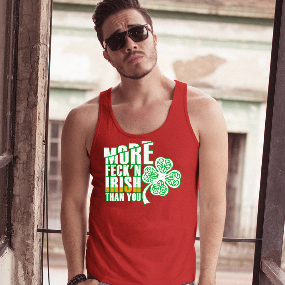 MORE FECK'N IRISH THAN YOU tank top st. patrick's day shamrock men's top red