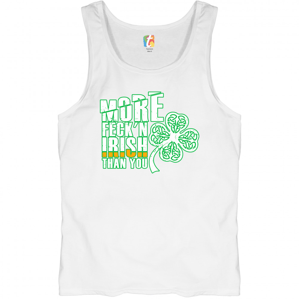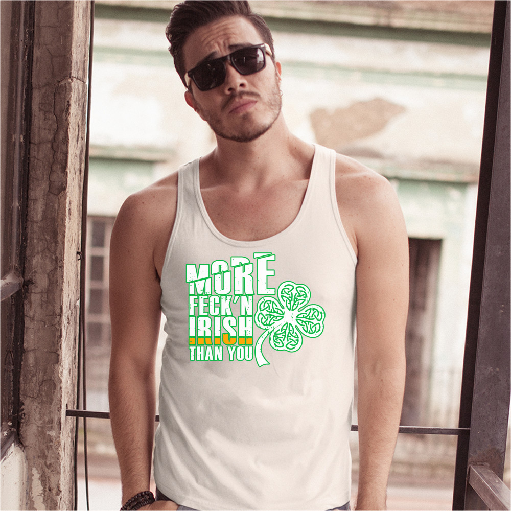 MORE FECK'N IRISH THAN YOU tank top st. patrick's day shamrock men's top white