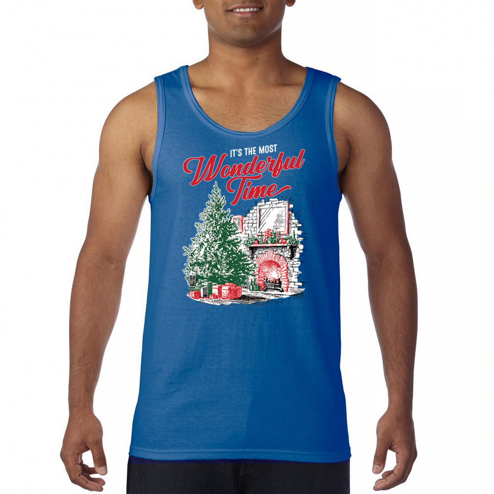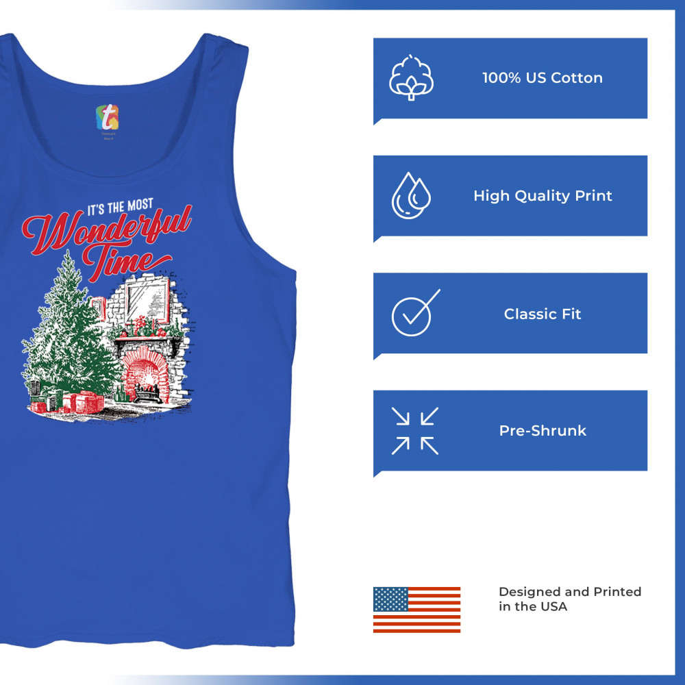 Make your holidays brighter with this “Most Wonderful Time†Christmas design, featuring a glowing fireplace, festive living room, and decorated Christmas tree. This cozy Christmas shirt combines holiday home decor style with classic Merry Xmas charm. Perfect for those who love Santa Claus, Rudolph, reindeer, Let It Snow vibes, and cheerful holiday fashion.