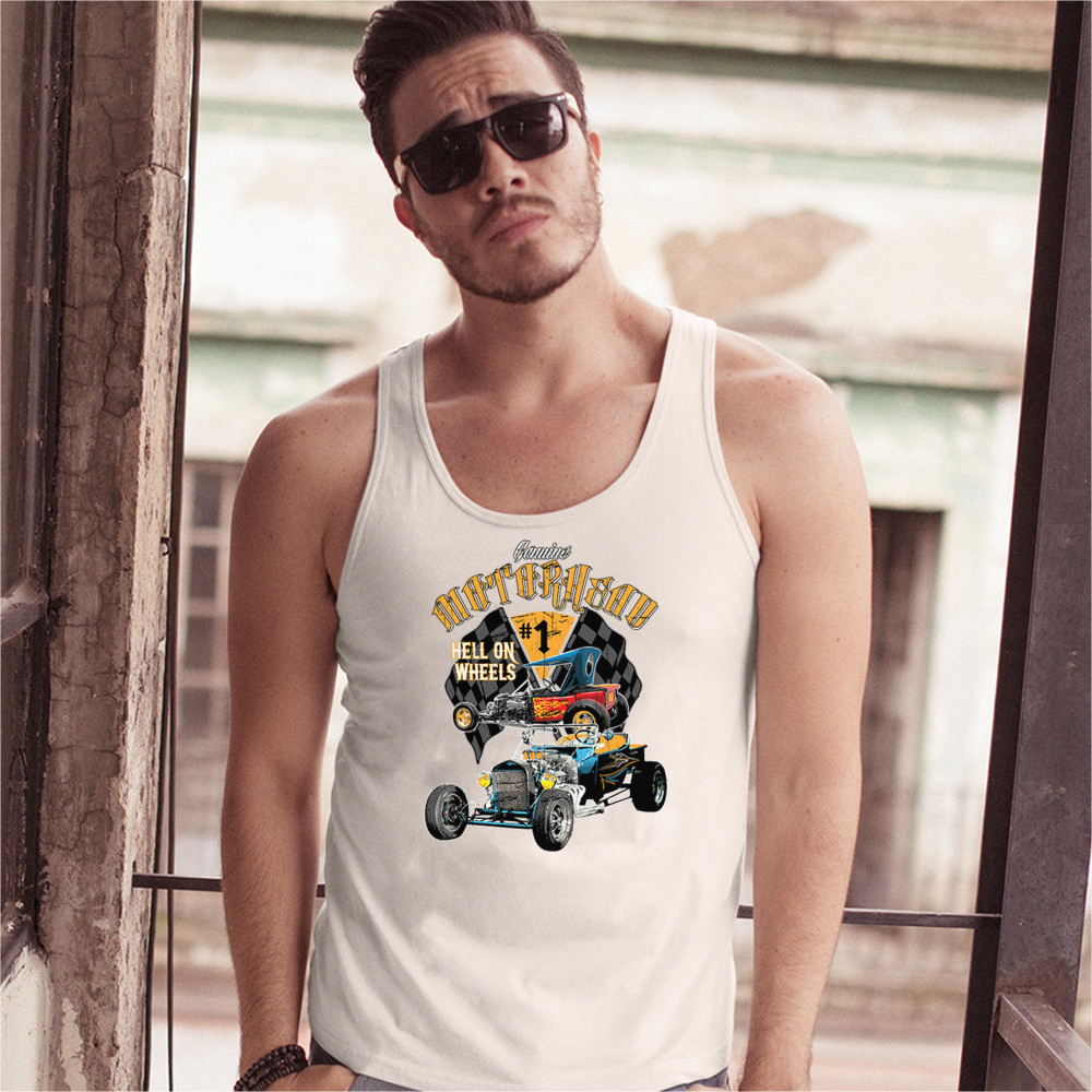 MOTORHEAD HOT ROD tank top hell on wheels route 66 drag racing men's top white