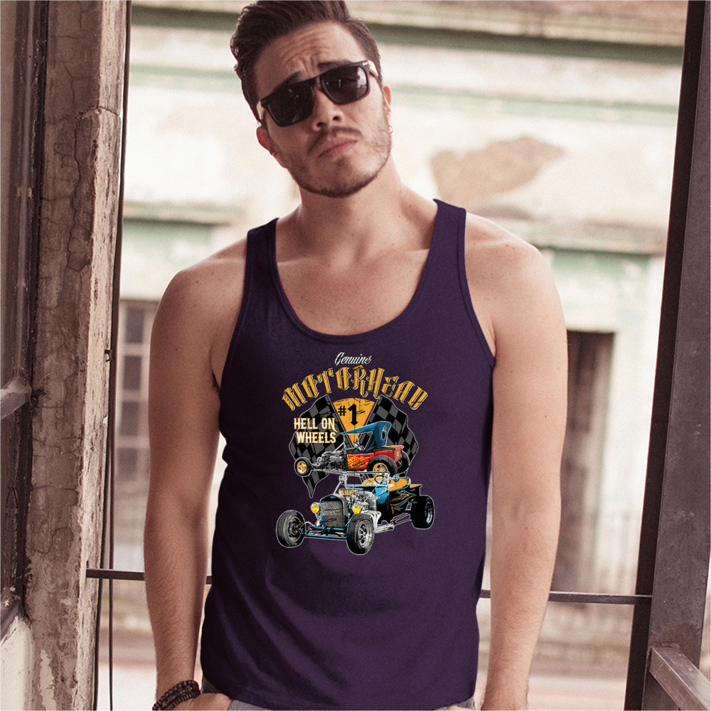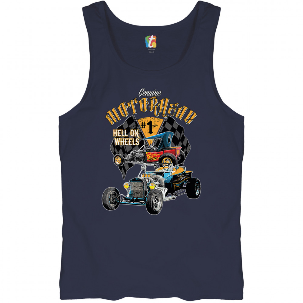 MOTORHEAD HOT ROD tank top hell on wheels route 66 drag racing men's top navy blue
