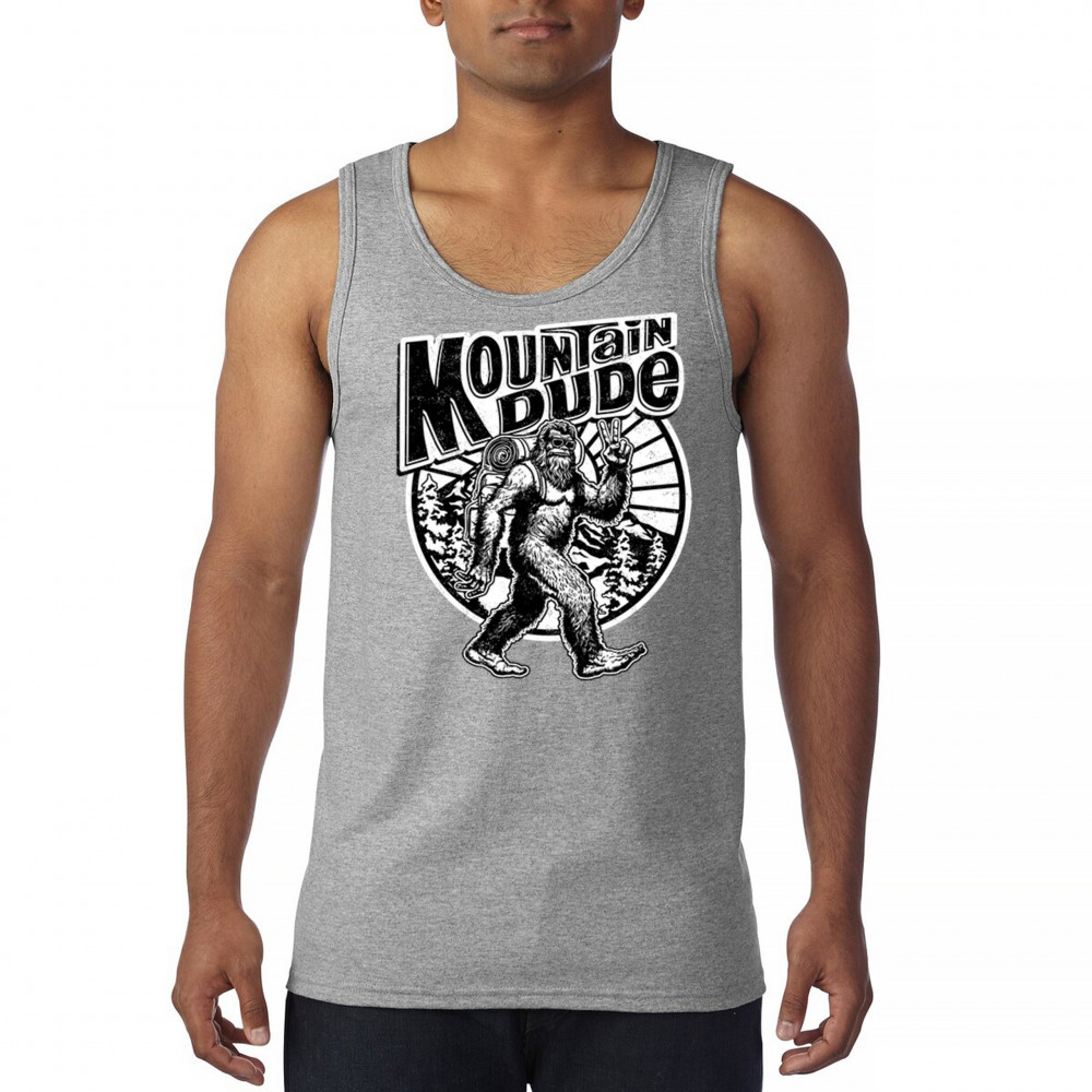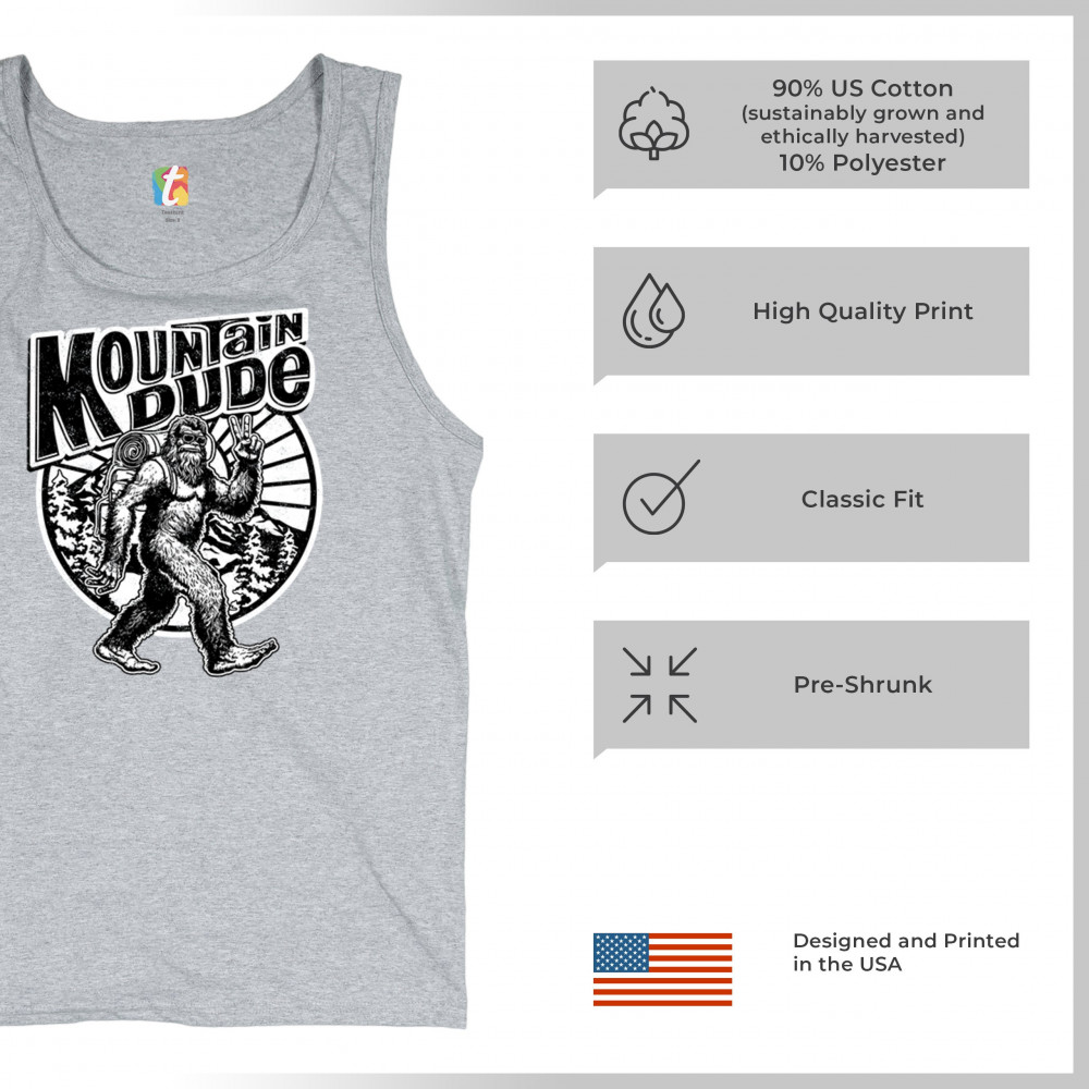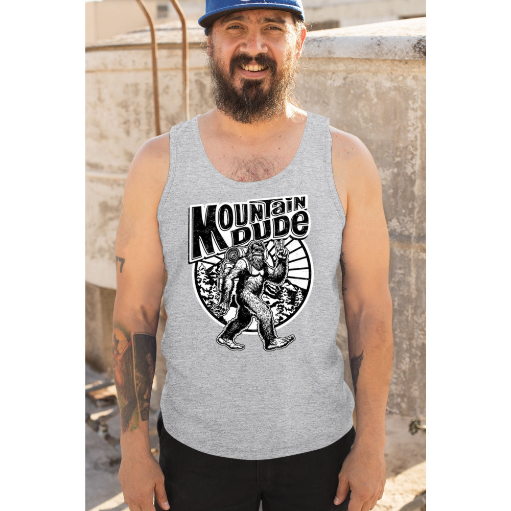 Celebrate outdoor adventures with the "Mountain Dude" design, featuring Sasquatch and mountain scenery. Perfect for hikers, campers, and Bigfoot fans.