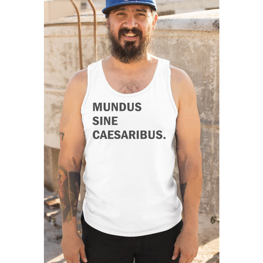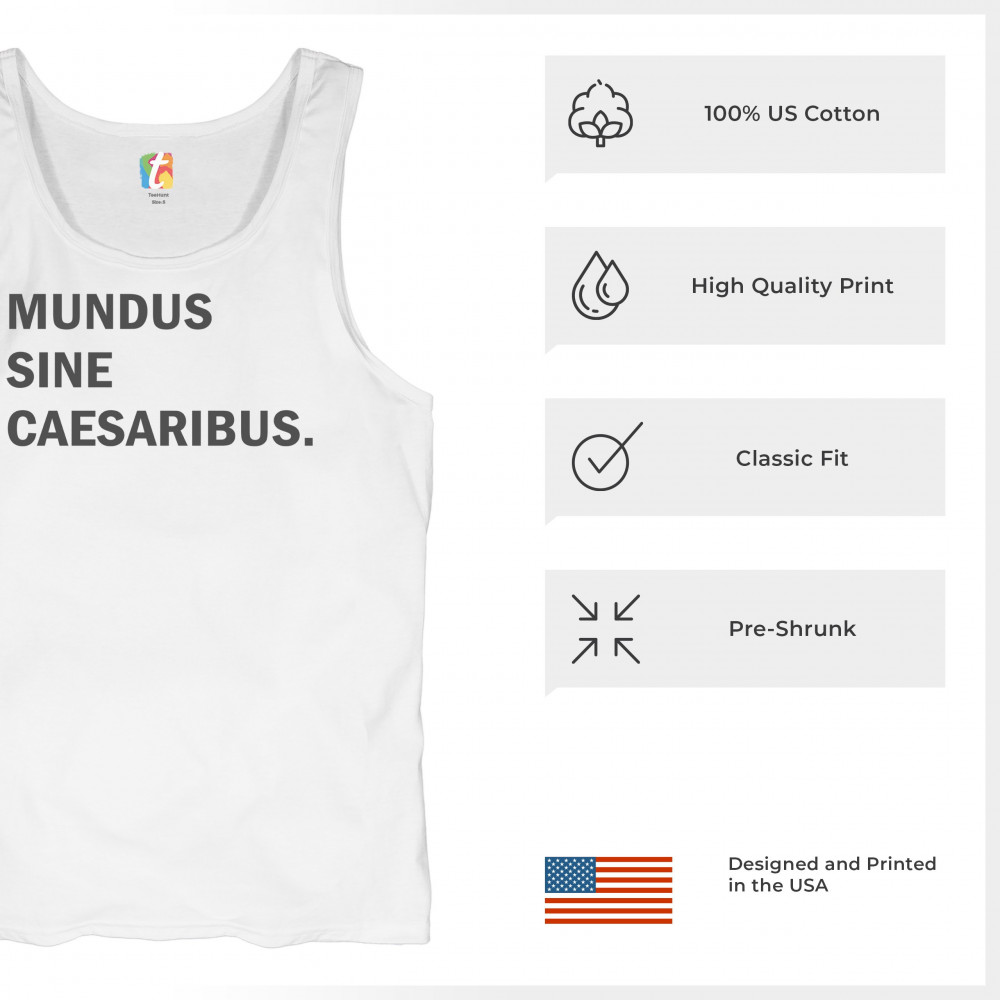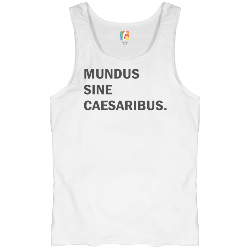 “Mundus Sine Caesaribus†Latin parody tee for rebels, meme lovers, and those tired of tech overlords. Make a witty anti-authority statement.