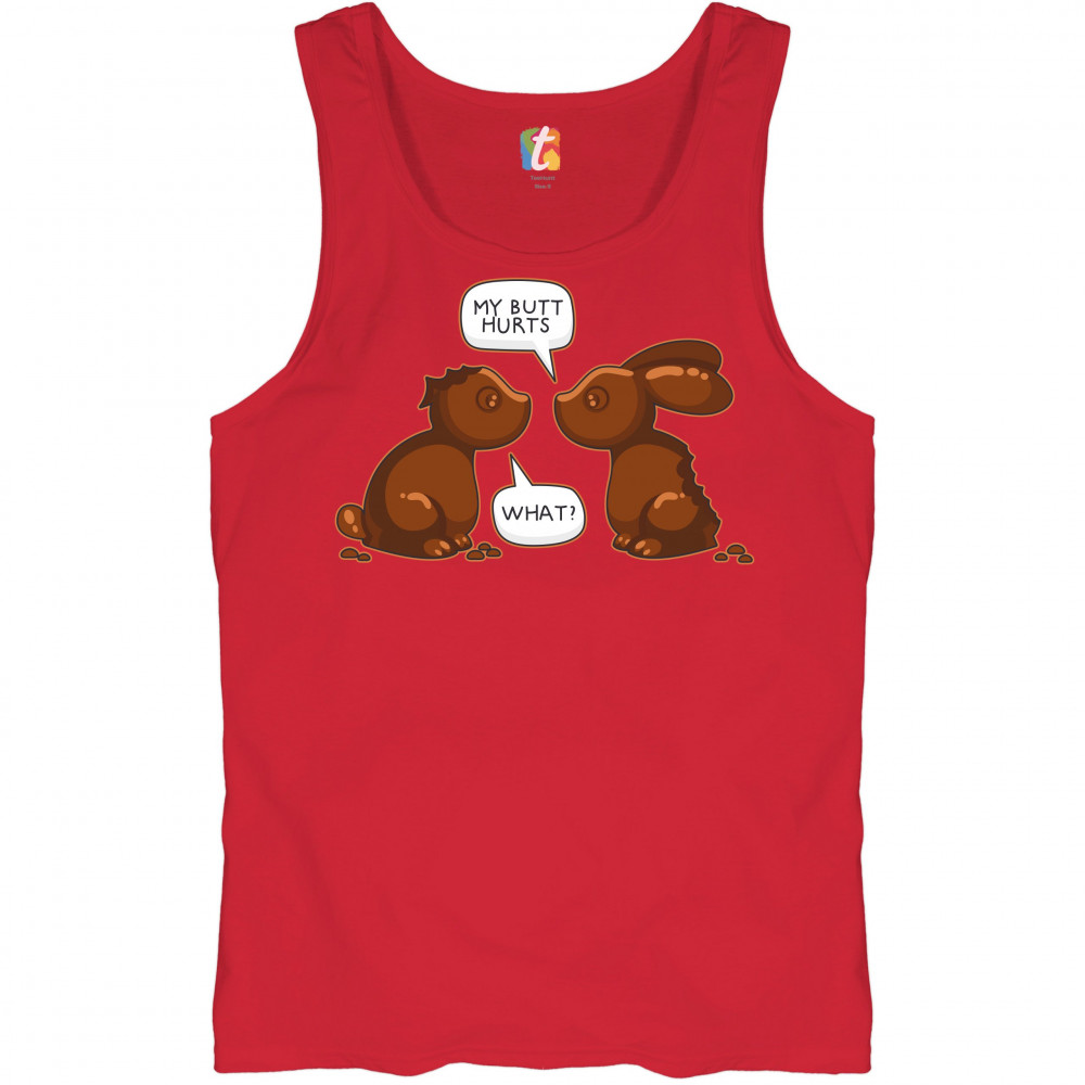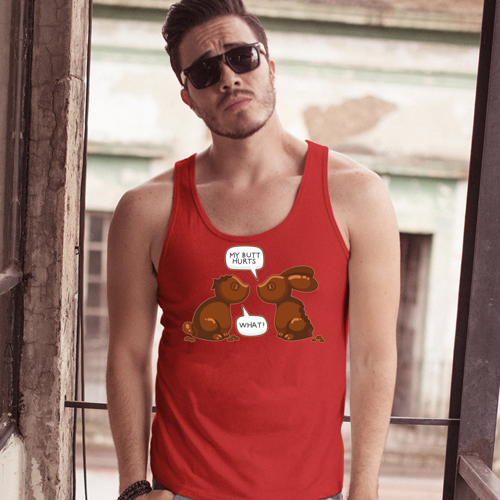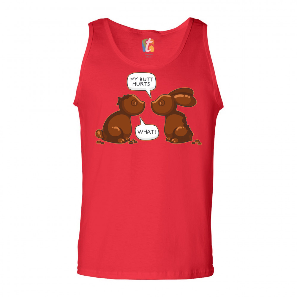 MY BUTT HURTS - WHAT? tank top chocolate bunnies easter rabbits men's top red