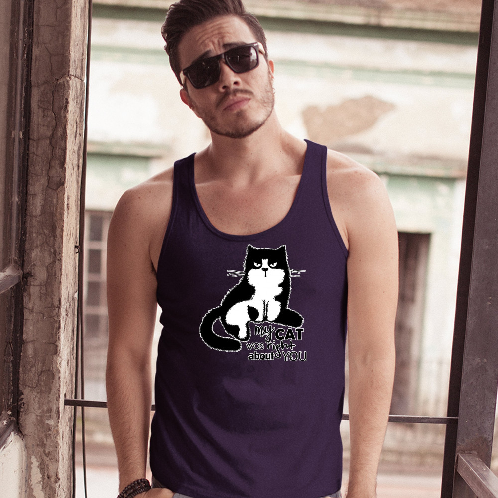 MY CAT WAS RIGHT ABOUT YOU tank top cat lover funny kitty kitten men's top navy blue