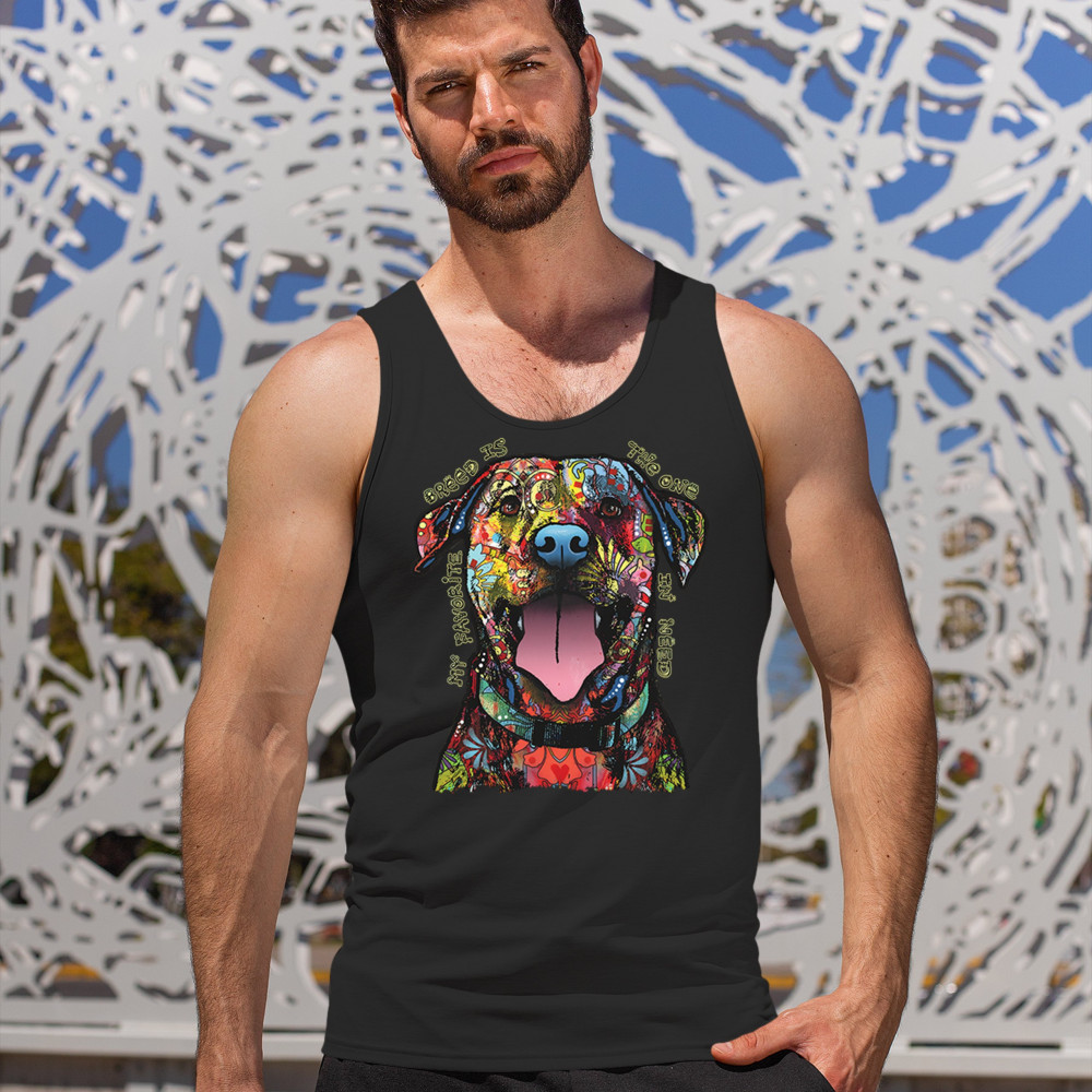 MY FAVORITE BREED IS THE ONE IN NEED tank top dean russo neon dog men's top black