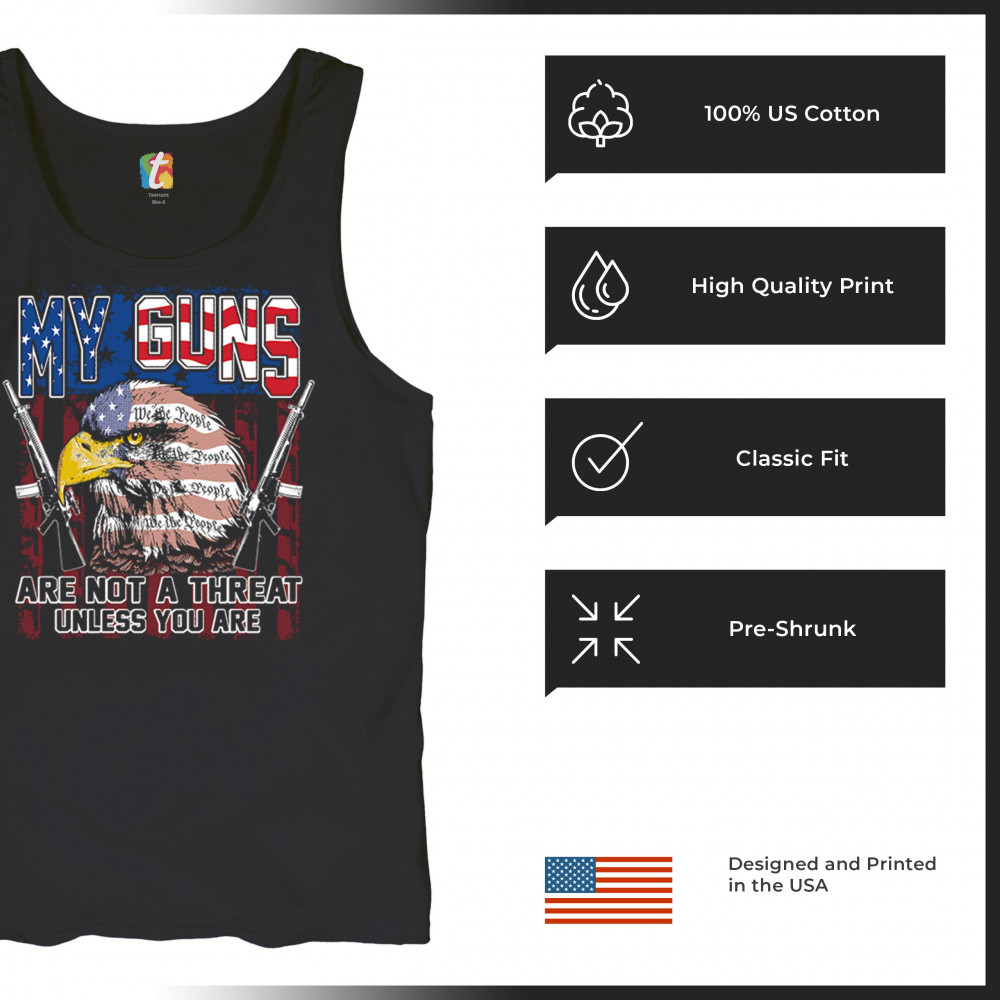 MY GUNS ARE NOT THREAT tank top 2nd amendment patriotic gun rights men's top black