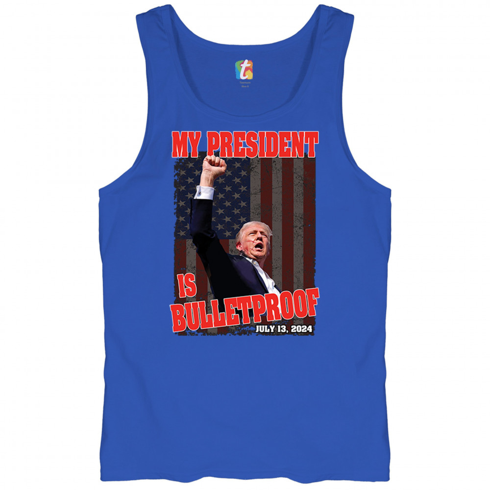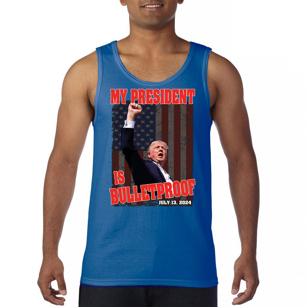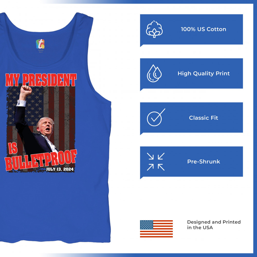 Support Trump with our "My President is Bulletproof" design, perfect for rallies and everyday wear. Show your patriotic pride and conservative values.