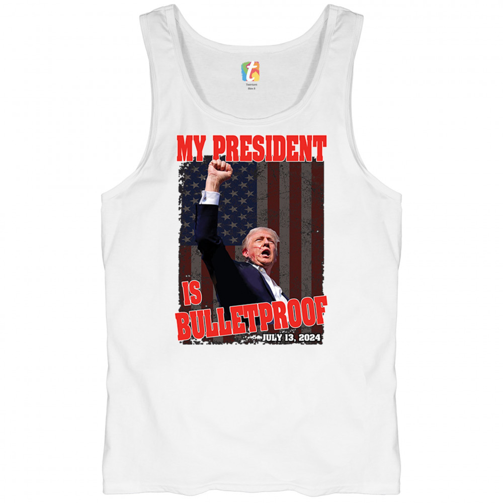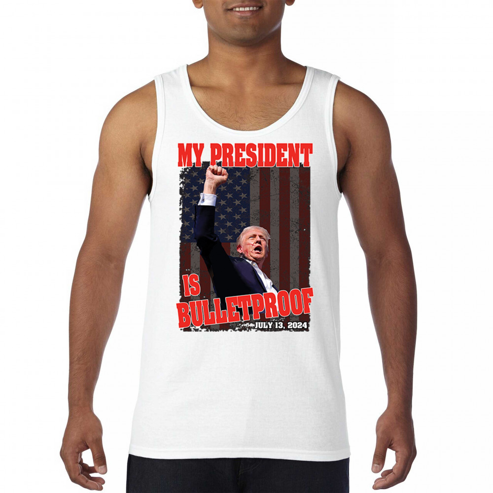Support Trump with our "My President is Bulletproof" design, perfect for rallies and everyday wear. Show your patriotic pride and conservative values.