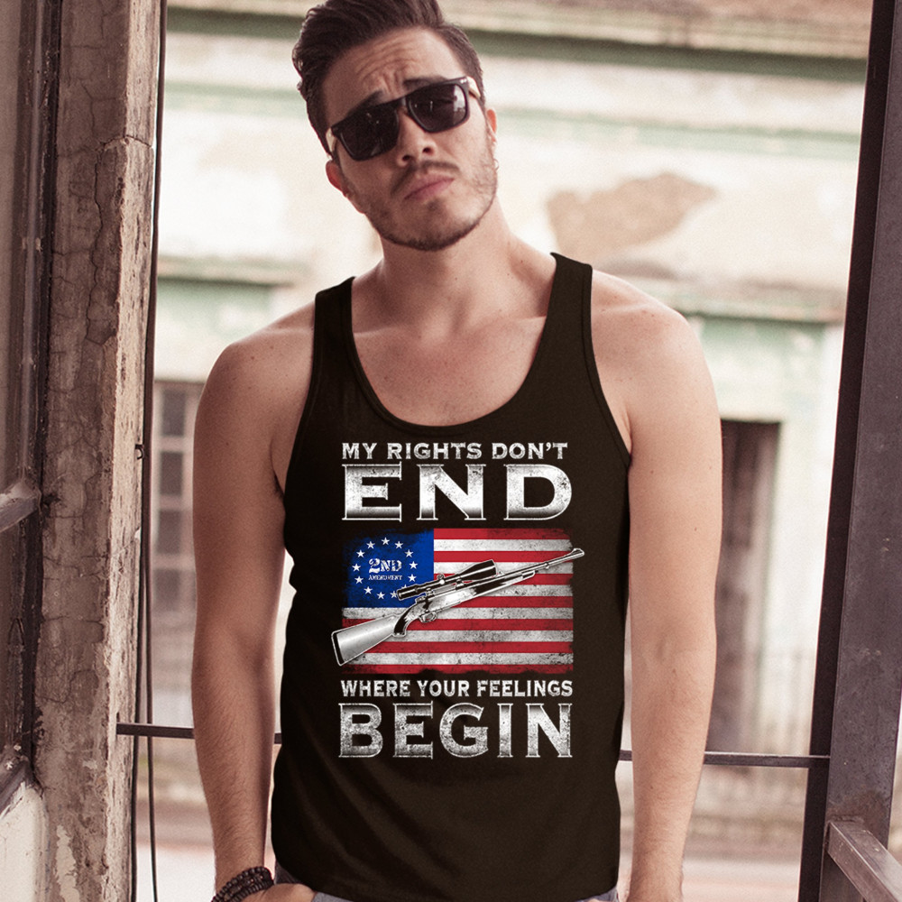 MY RIGHTS DON'T END WHERE YOUR FEELINGS BEGIN tank top 2nd amendment men's top black