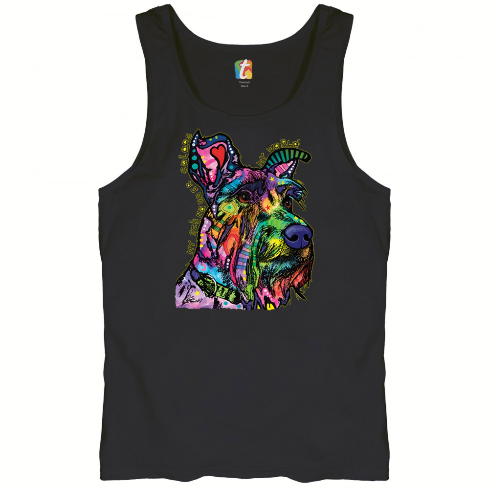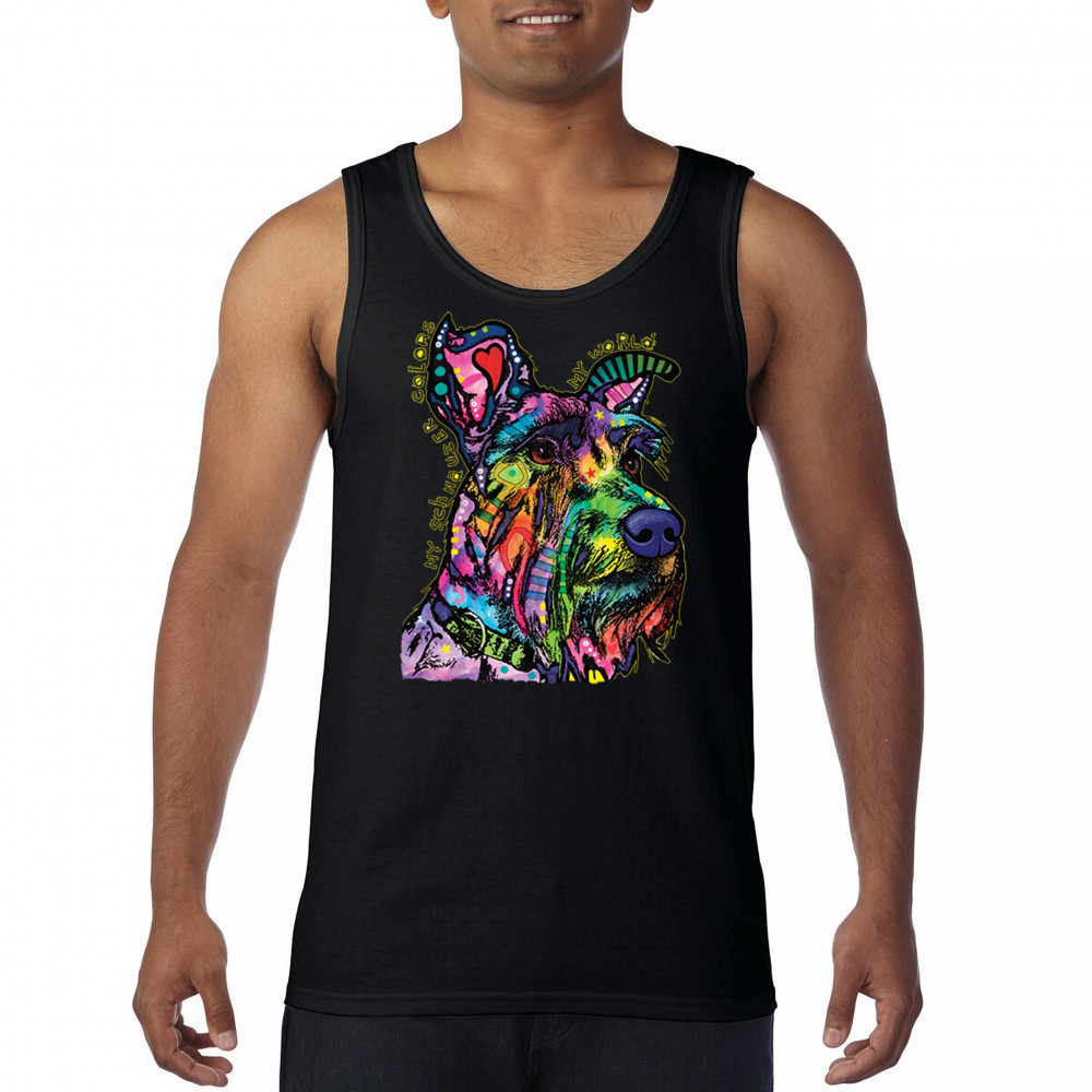 MY SCHNAUZER COLORS MY WORLD tank top dean russo pet dog mom men's top black