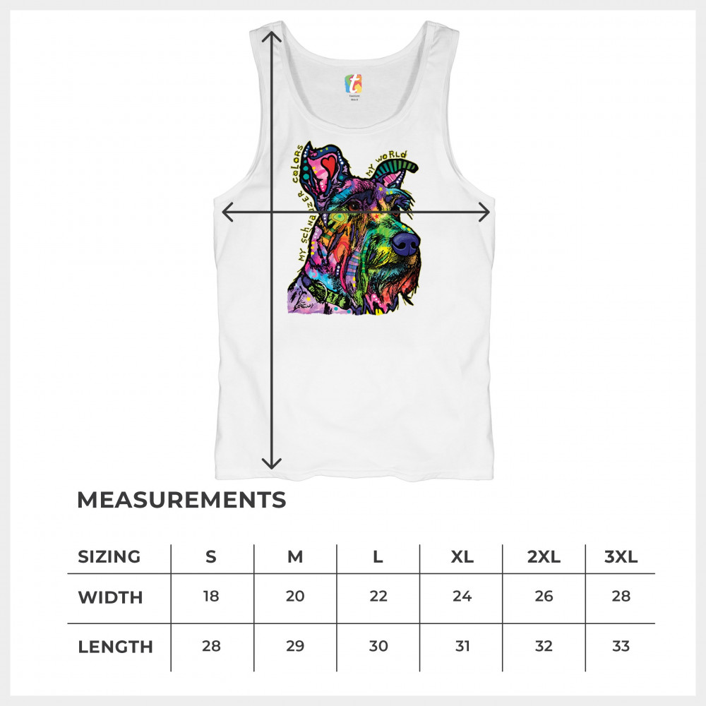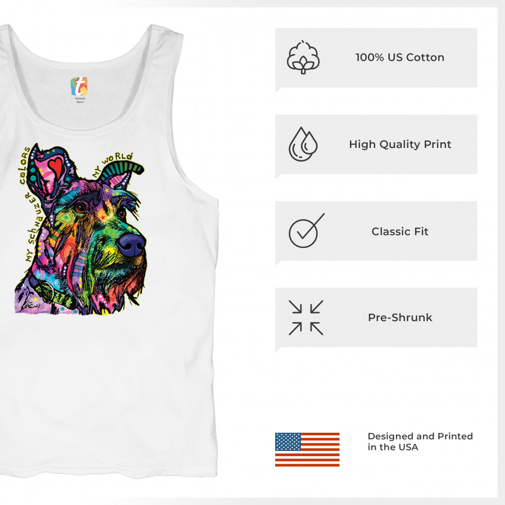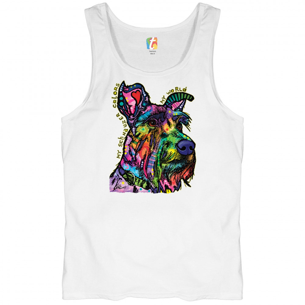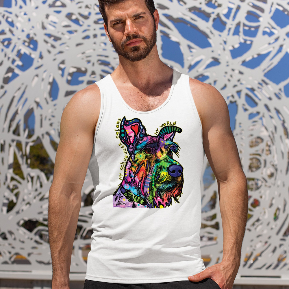 MY SCHNAUZER COLORS MY WORLD tank top dean russo pet dog mom men's top white