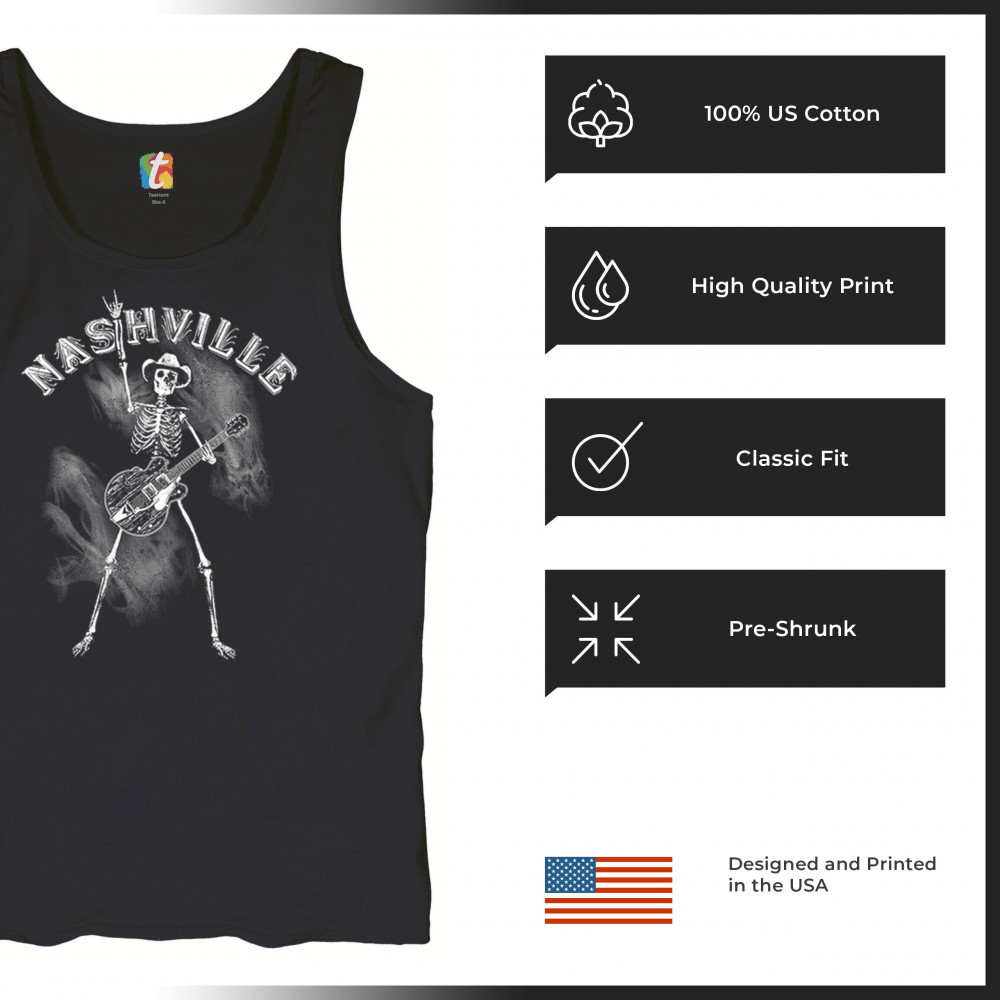 Bold skeleton cowboy design with Nashville grit and country rock vibes. Perfect for fans of music, guitars, and rebel southern style.