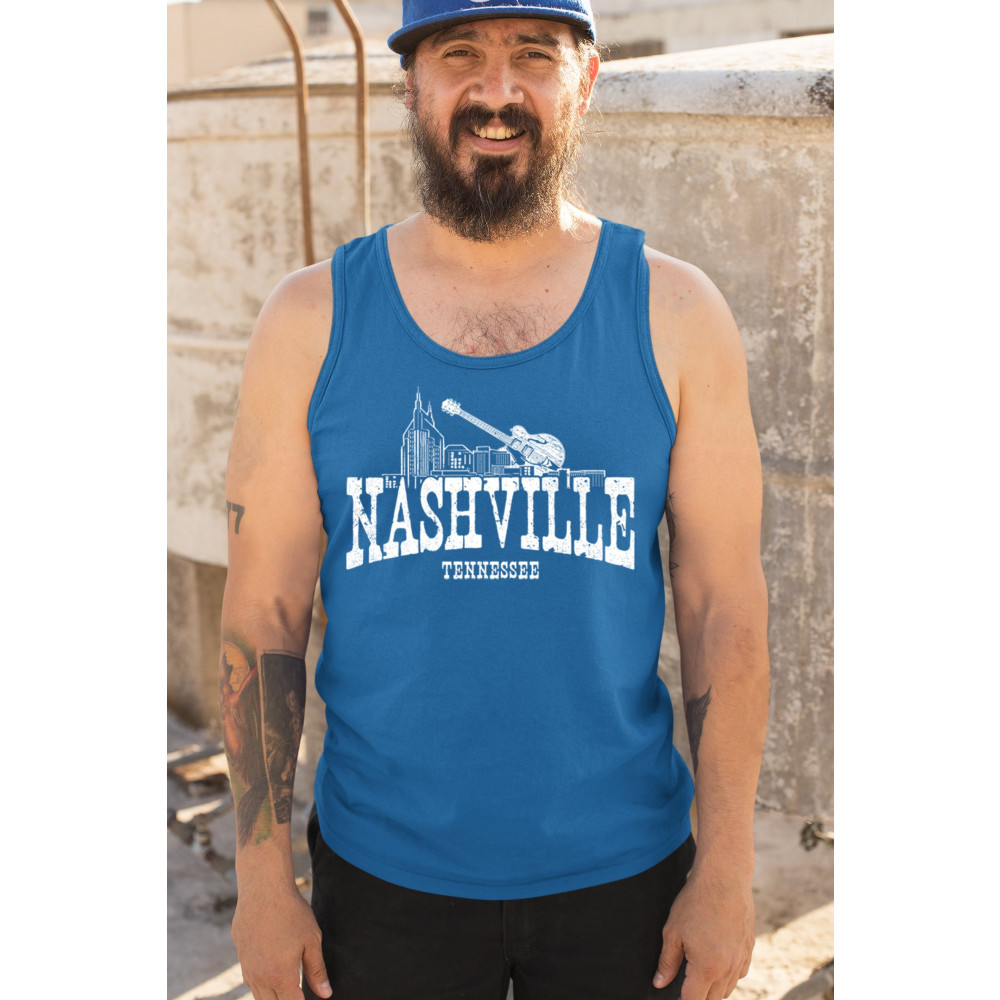 Vintage Nashville skyline and guitar design perfect for music fans, tourists, and proud Tennesseans. Ideal for concerts and city adventures.