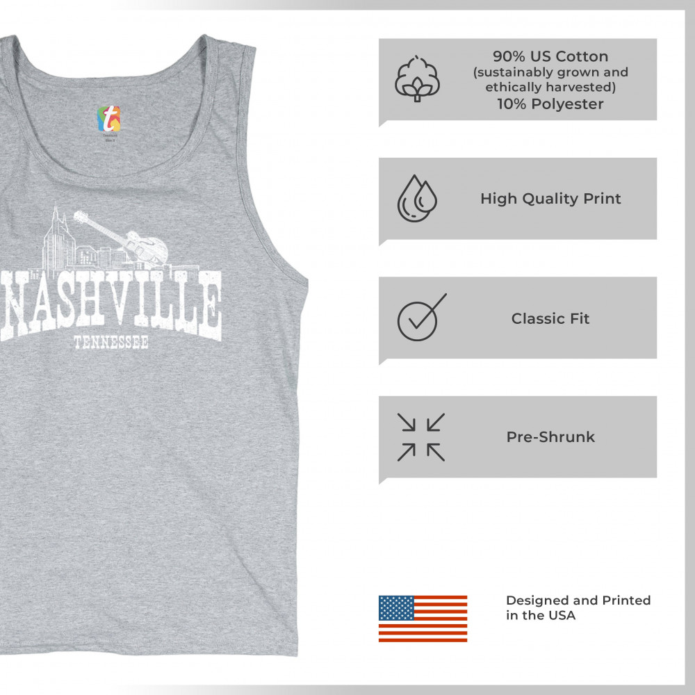 Vintage Nashville skyline and guitar design perfect for music fans, tourists, and proud Tennesseans. Ideal for concerts and city adventures.