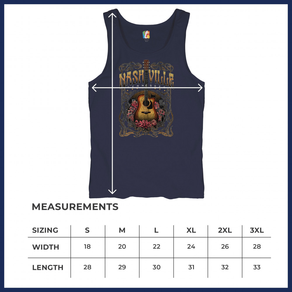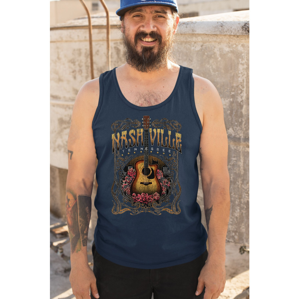 Celebrate the musical soul of Nashville with this vintage guitar and roses design. Perfect for fans of country, bluegrass, and folk music, it captures the charm of Music City with Western-style artwork. Great as a souvenir or for wearing to concerts, tours, and Tennessee road adventures.