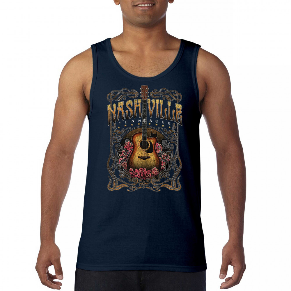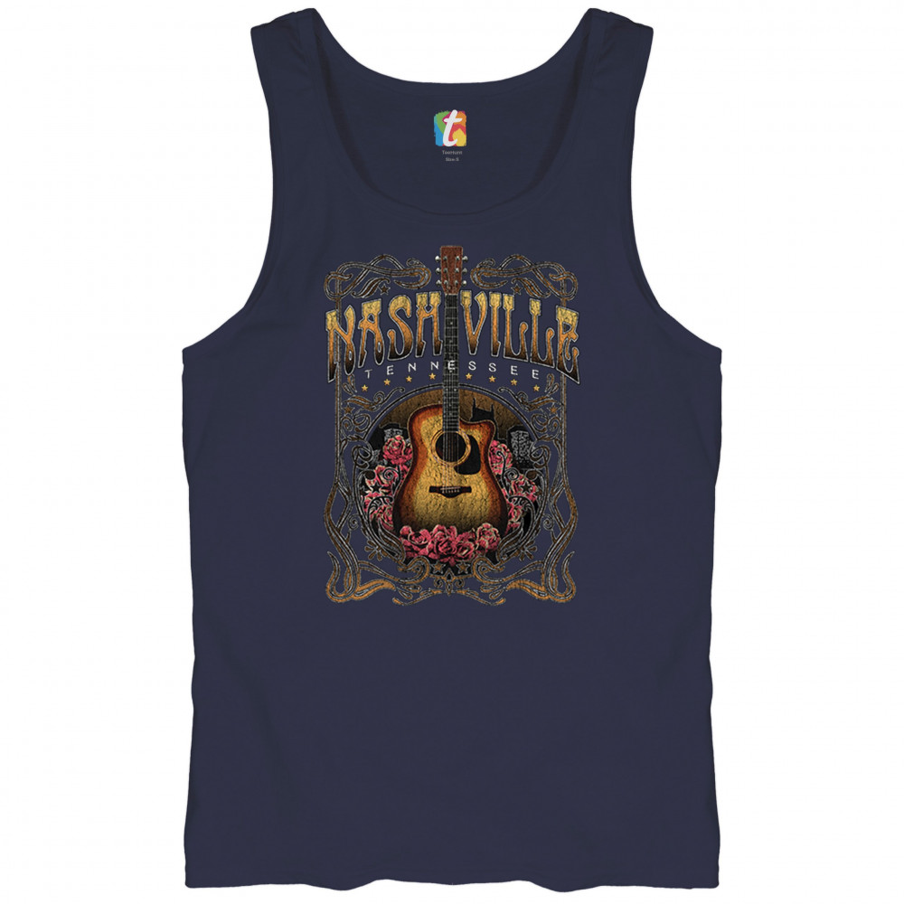 Vintage Nashville Tennessee design with rustic guitar and roses. Great for concerts, country music fans, road trips, and souvenir wear.