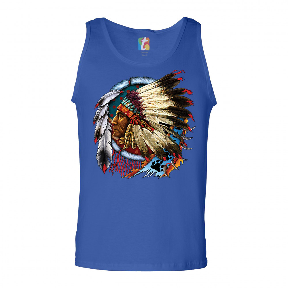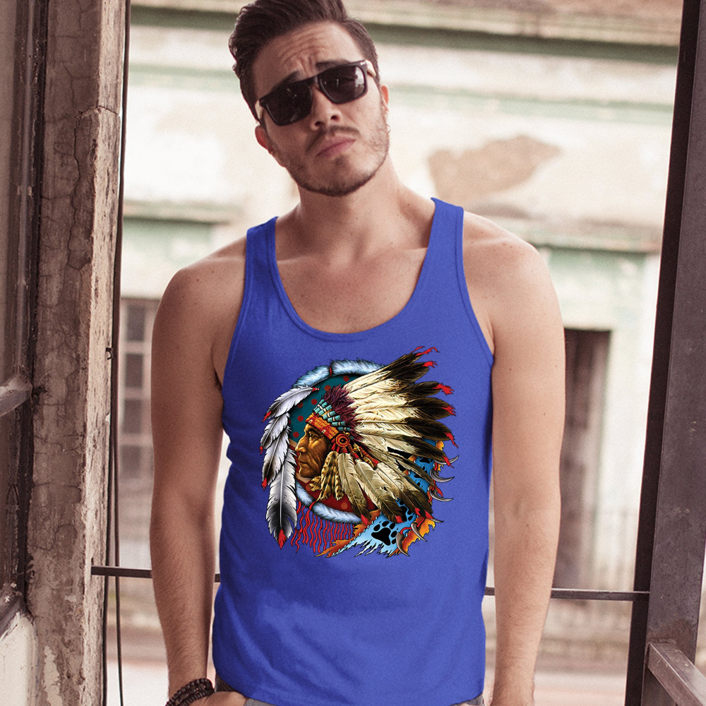 NATIVE AMERICAN CHIEF tank top war bonnet dreamcatcher indigenous men's top royal blue