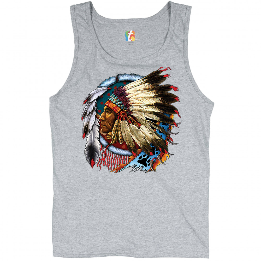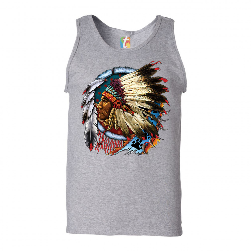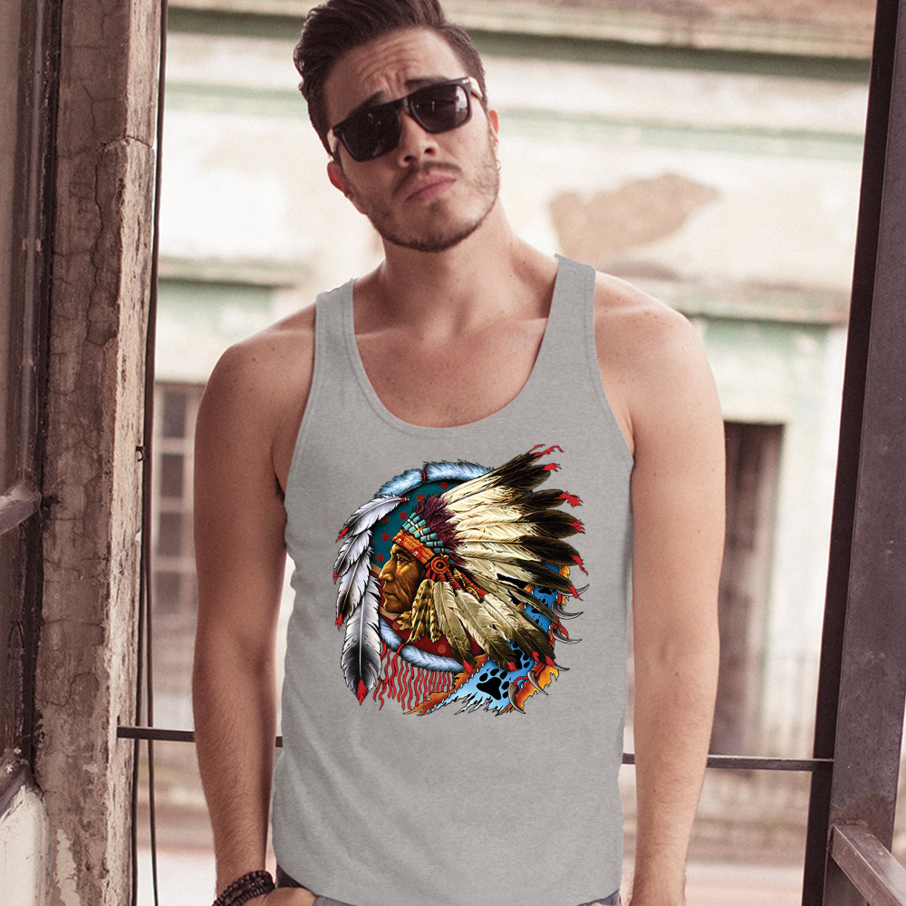 NATIVE AMERICAN CHIEF tank top war bonnet dreamcatcher indigenous men's top gray