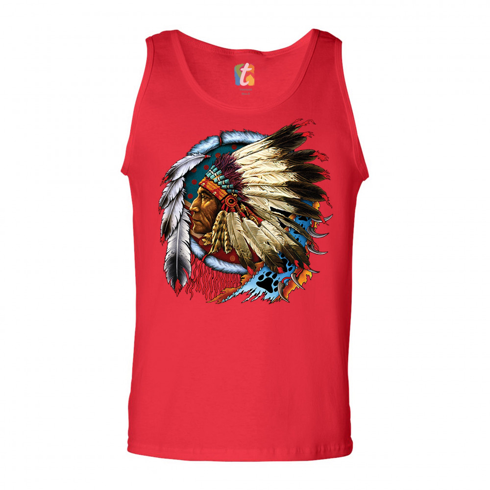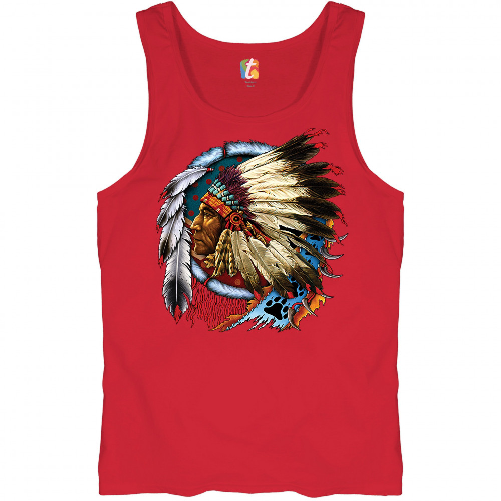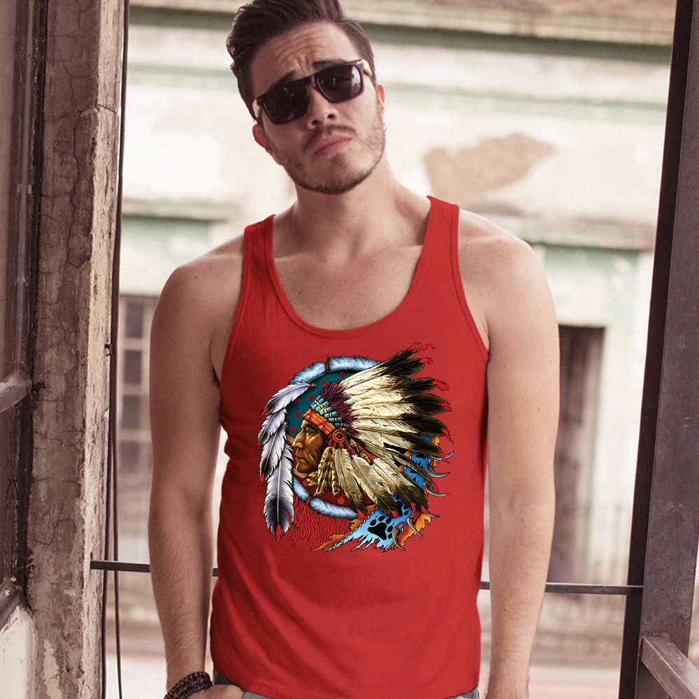 NATIVE AMERICAN CHIEF tank top war bonnet dreamcatcher indigenous men's top red