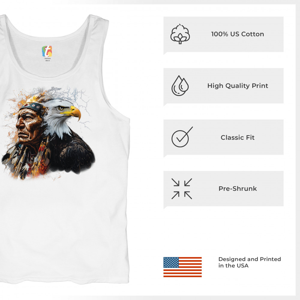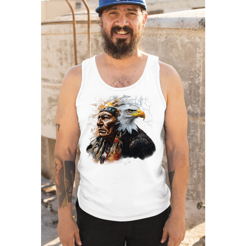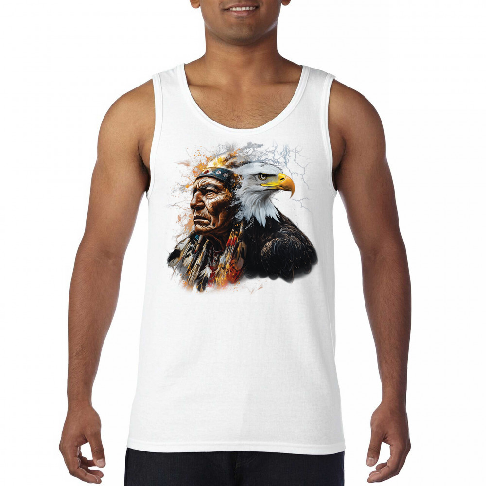 Bold tribal totem design with Native chief, eagle, lightning, and fire. A fierce blend of spirit, power, and cultural pride in one image.