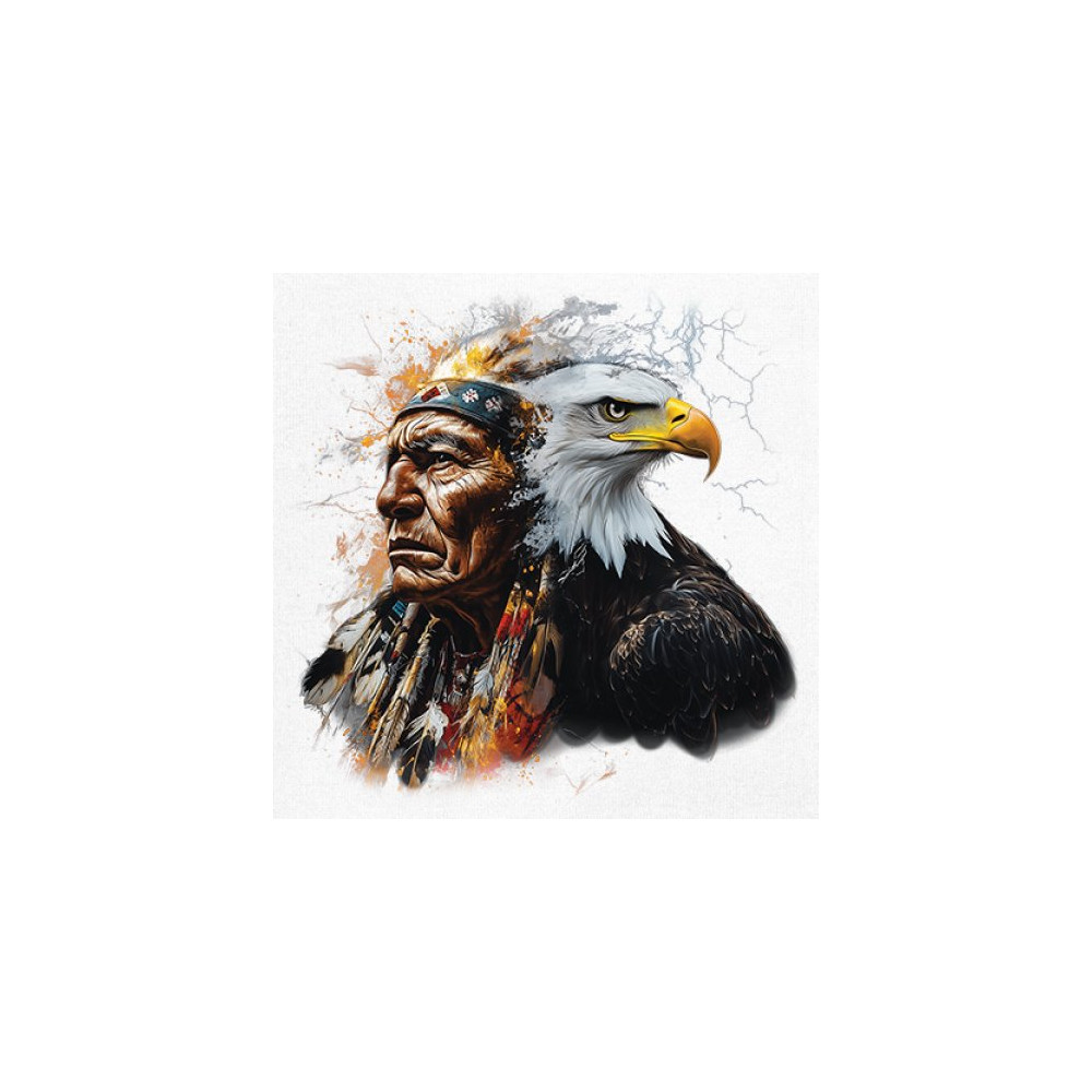 This electrifying design showcases a Native American chief with a bold bald eagle, surrounded by lightning and fire. It blends spiritual animal symbolism with cultural strength and pride. Ideal for admirers of tribal heritage, ancestral energy, and fierce visual storytelling through nature and tradition.